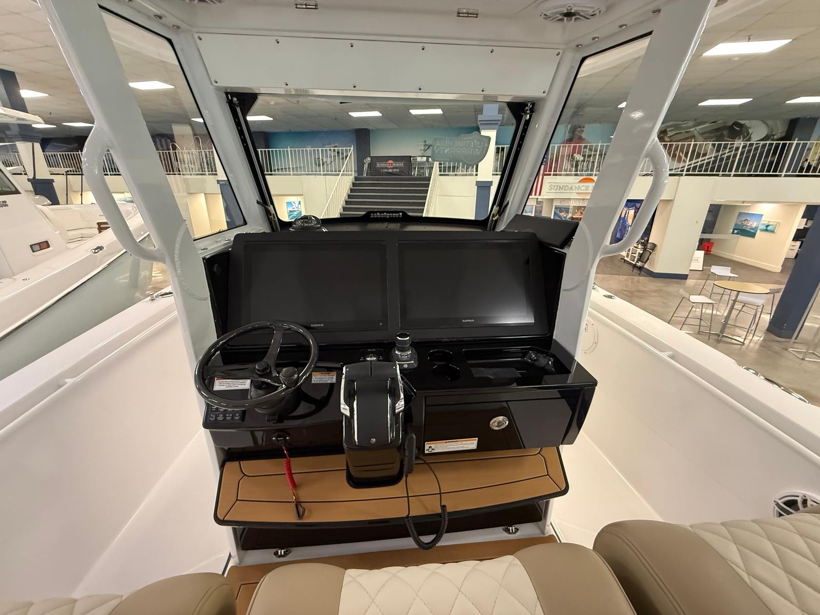 Power and precision are at the heart of the Everglades 335 CC. Equipped with twin Mercury V10 Cold Fusion engines, each delivering 425 horsepower, this center console boat offers a combined 850 horsepower for exhilarating acceleration and top-end speed. The advanced Mercury engines are renowned for their reliability, smooth operation, and fuel efficiency, making them a perfect match for the Everglades 335 CC. The inclusion of an autopilot system and joystick control for the twin Mercury engines provides effortless handling and maneuverability, whether you are docking in tight spaces or navigating open waters. The carbon fiber steering wheel upgrade adds a touch of sportiness and comfort, ensuring that every journey is as enjoyable as it is thrilling.