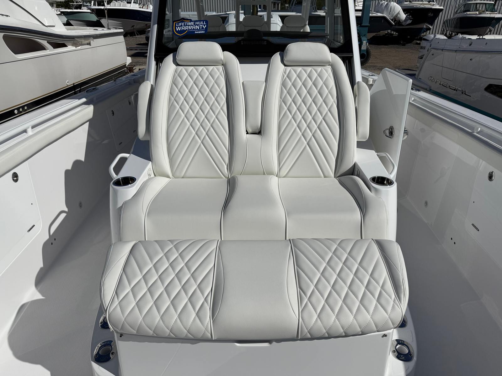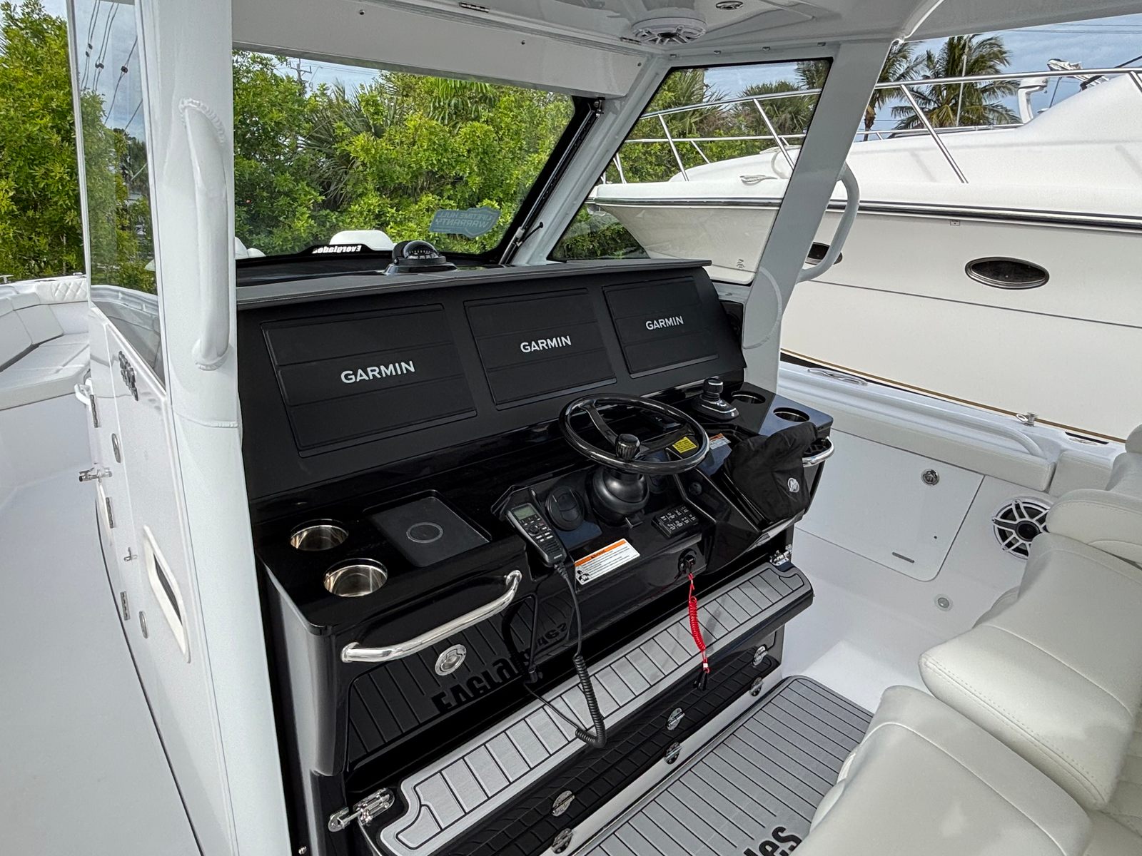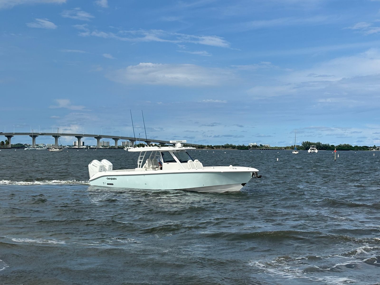 Beyond its luxurious amenities, the Everglades 395 CC is designed with practicality in mind. The center console configuration provides easy access around the deck, making docking and maneuvering a breeze. Ample storage solutions ensure your gear, tackle, and personal items are always organized and within reach, while the robust hull design offers stability and safety in a variety of conditions.Fuel efficiency is enhanced by the advanced engine technology, allowing you to enjoy longer trips with fewer stops. The shock-mitigating helm seat pedestals and climate-controlled seating reduce fatigue, making extended outings more enjoyable for everyone on board. Whether you are planning a quick getaway or a full day on the water, the Everglades 395 CC is equipped to handle your every need with ease and reliability.