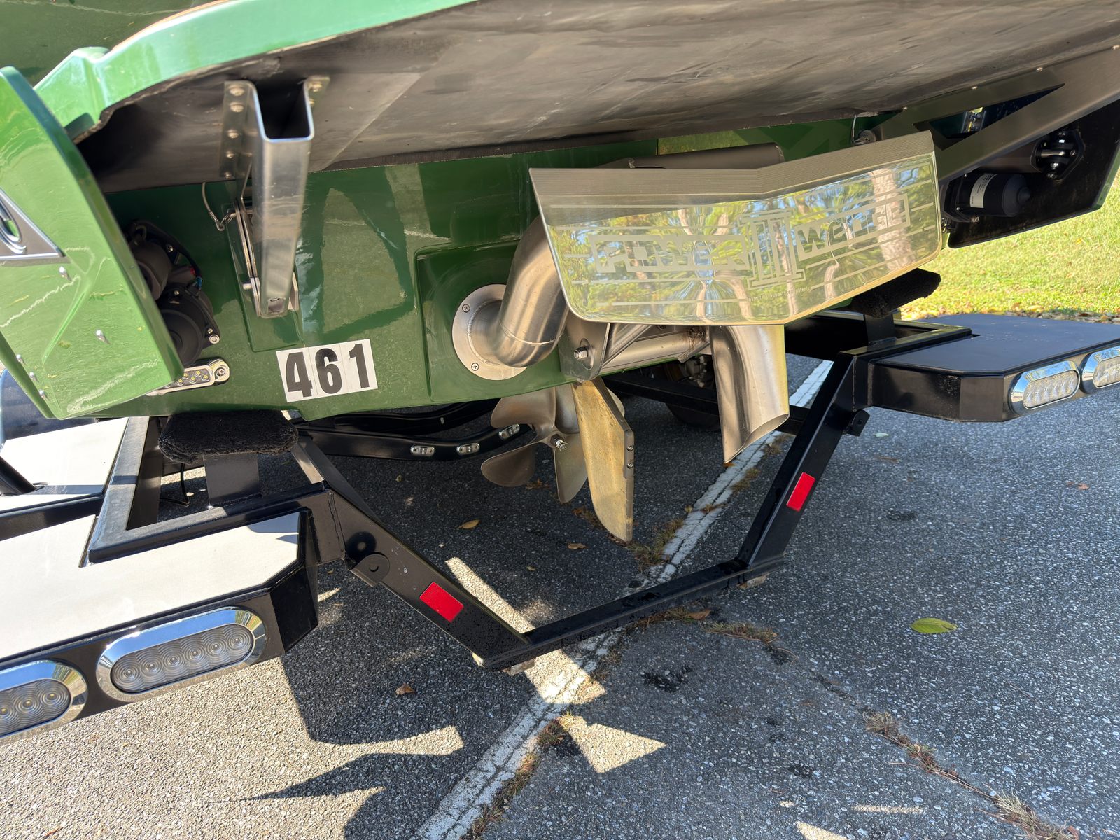 Notable features include: -Malibu M5Di engine (86 hours) -PTM Clamping racks -Extended Bimini -Wake view seating -Plug and play ballast -Cockpit soft grip flooring -Tower speakers -Matching trailer This boat is loaded out and is stunning in its Sumpter Green and Sepia Tan colorway.