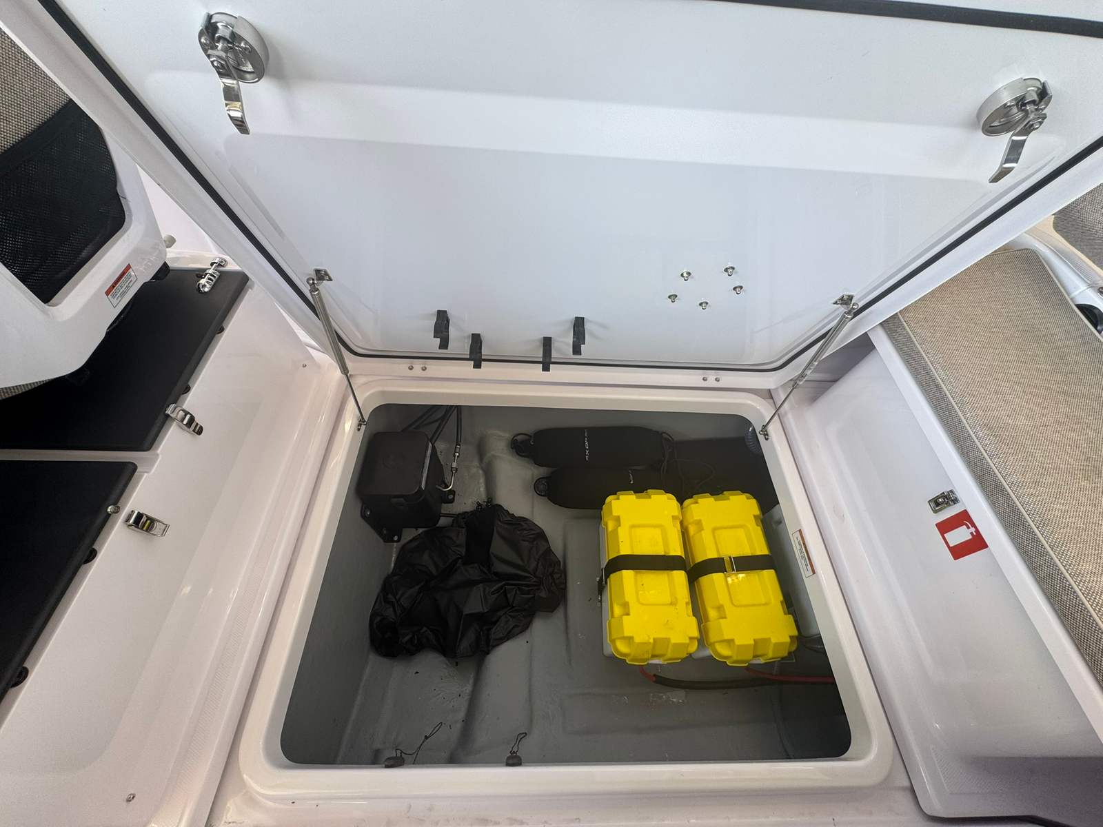 - Freshwater system - Seat base with top-loaded refrigerator and sink
