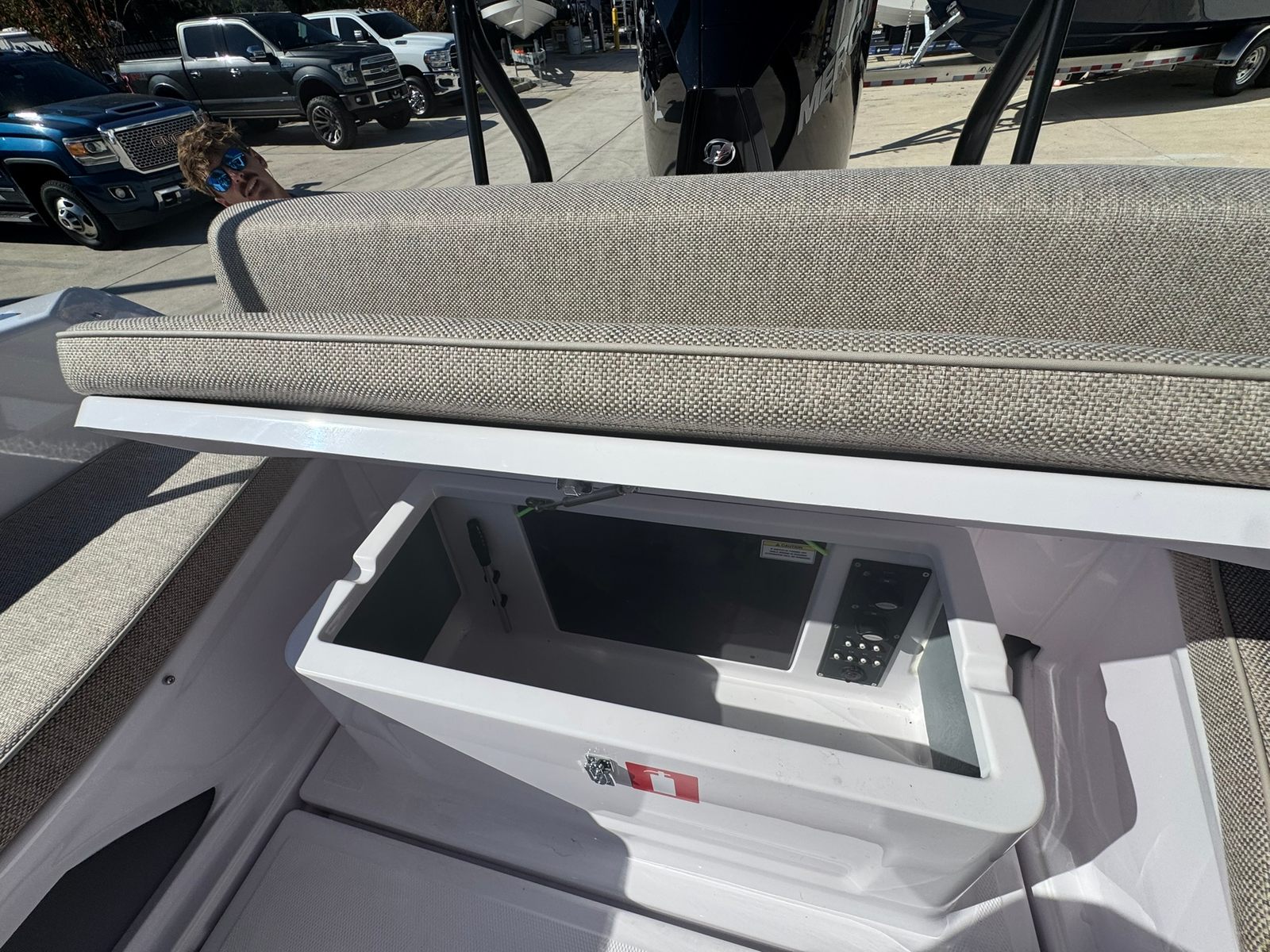 The Axopar 22 T-Top is packed with premium features designed to enhance your boating experience. Enjoy the convenience of a freshwater system with an electric fresh water flush toilet and a 25-liter septic tank, ensuring comfort and hygiene during extended trips. The advanced Chartplotter Simrad NSS4 12" provides intuitive navigation, while the Echo sounder with thru-hull installation offers precise depth readings for safe passage.For onboard entertainment, the Clarion basic audio system sets the mood, and the upgraded Clarion audio entertainment system takes your listening experience to the next level. The freshwater system includes a 32-liter tank with a shower on the aft deck, perfect for rinsing off after a swim or cleaning up before heading home. The seat base features a top-loaded refrigerator and sink, allowing you to keep refreshments cool and prepare snacks with ease.Additional highlights include a Quick bow thruster for effortless docking and maneuvering, a durable rub rail for added protection, and high-quality onboard fittings that reflect Axopar’s commitment to excellence. These features make the Axopar 22 T-Top a standout Center Console boat for sale in today’s market.