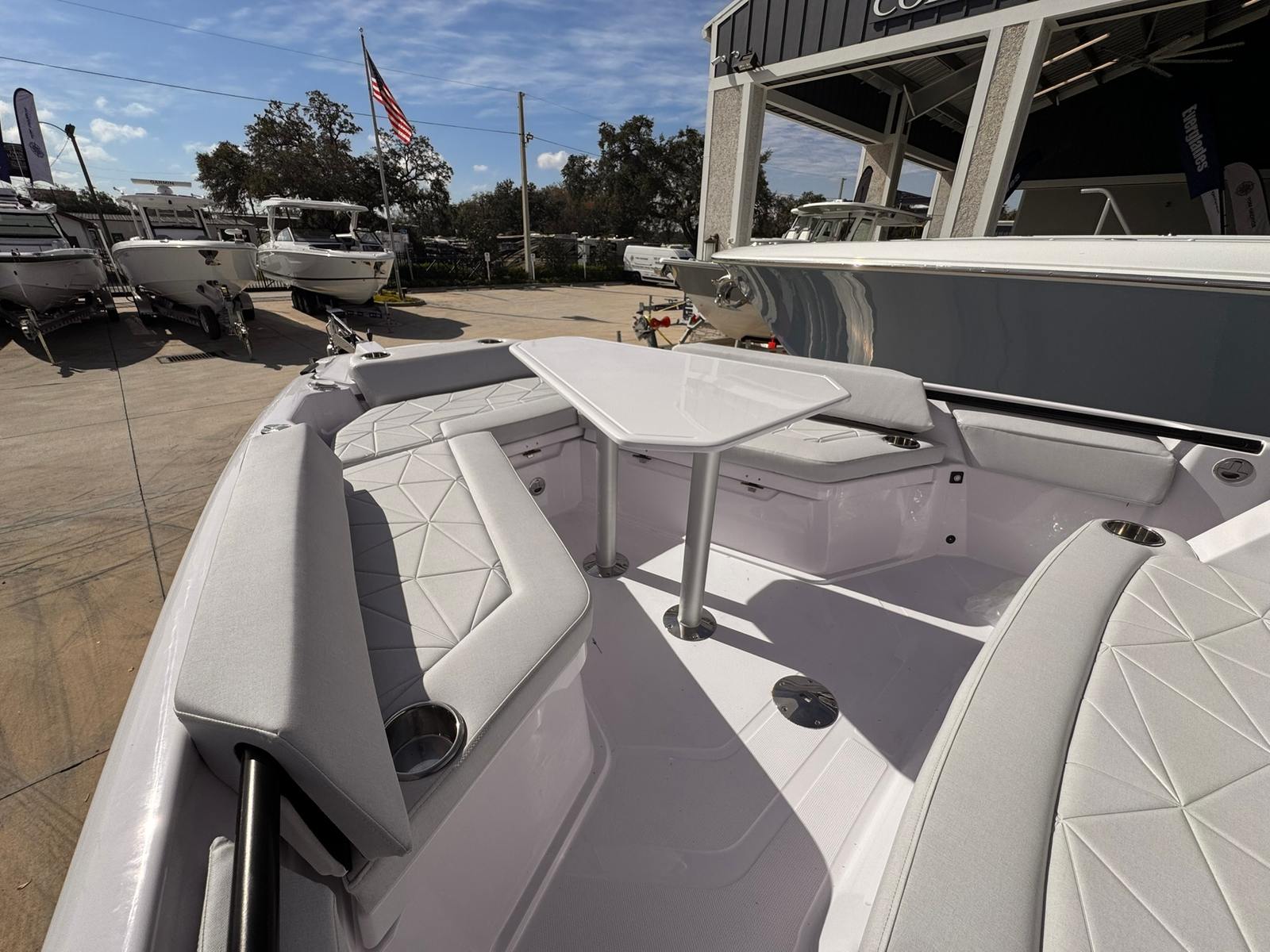 Power and agility are at the heart of the Axopar 29 CCX. Equipped with twin engines delivering a combined 500 horsepower, this center console boat promises exhilarating acceleration and impressive top speeds. The dual-engine setup not only enhances performance but also provides added reliability and maneuverability, making it ideal for both seasoned captains and those new to boating. Whether you are cruising along the coastline, exploring hidden coves, or heading offshore for a day of fishing, the Axopar 29 CCX delivers a smooth, responsive ride that inspires confidence in any conditions.