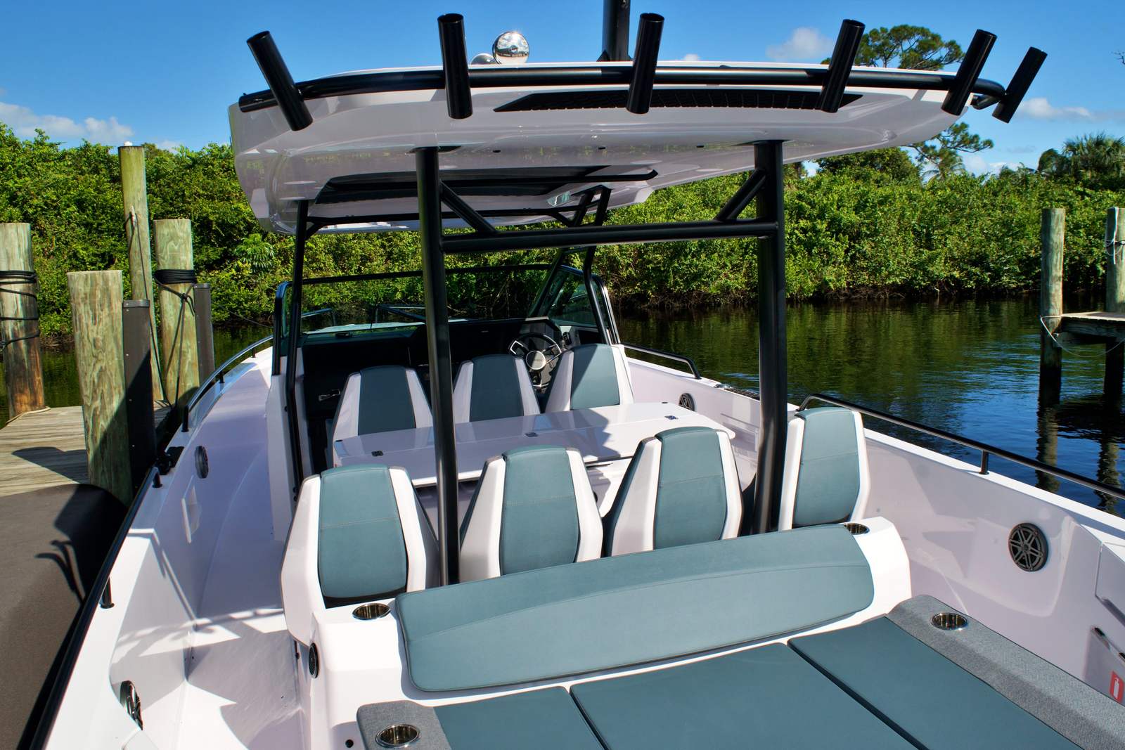Owning the Axopar 37 Sun Top means embracing a lifestyle of fun, relaxation, and adventure. The spacious Center Console layout provides ample room for socializing, sunbathing, and enjoying the open water. The premium audio entertainment system ensures your favorite tunes are always within reach, creating the perfect atmosphere for memorable moments with family and friends. The sundeck cushions and multi-storage compartments offer both comfort and convenience, allowing you to unwind or gear up for water sports and activities.The freshwater shower and wet bar add a touch of luxury, making it easy to refresh after swimming or prepare drinks for your guests. The advanced lighting package sets the mood for evening cruises, while the shore power system keeps your electronics charged and ready. With the BRABUS Line enhancements and Iconic ST Edition styling, you’ll enjoy a boat that’s as visually striking as it is functional.