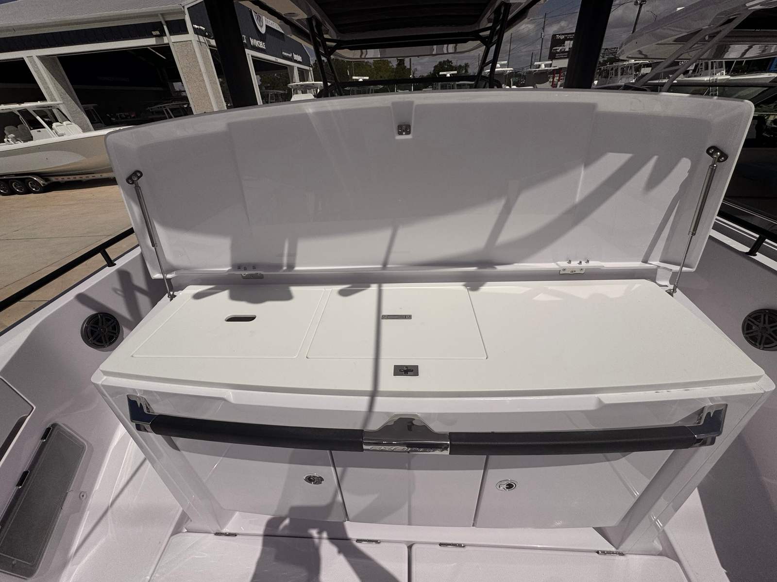 The Axopar 37 Sun Top is packed with features that elevate your boating experience to new heights. As a center console boat, it offers unobstructed 360-degree access around the deck, making it perfect for fishing, entertaining, or simply soaking up the sun. The Sun Top design provides ample shade and protection from the elements, allowing you to enjoy extended days on the water in comfort. The spacious deck layout includes generous seating areas, making it easy to relax and socialize with guests.With its innovative design, the Axopar 37 Sun Top maximizes every inch of space, offering clever storage solutions for all your gear and essentials. The ergonomic helm station is equipped with state-of-the-art controls and displays, putting everything you need at your fingertips. The high-quality materials and finishes throughout the boat reflect Axopar’s commitment to craftsmanship and durability, ensuring that your investment will stand the test of time.