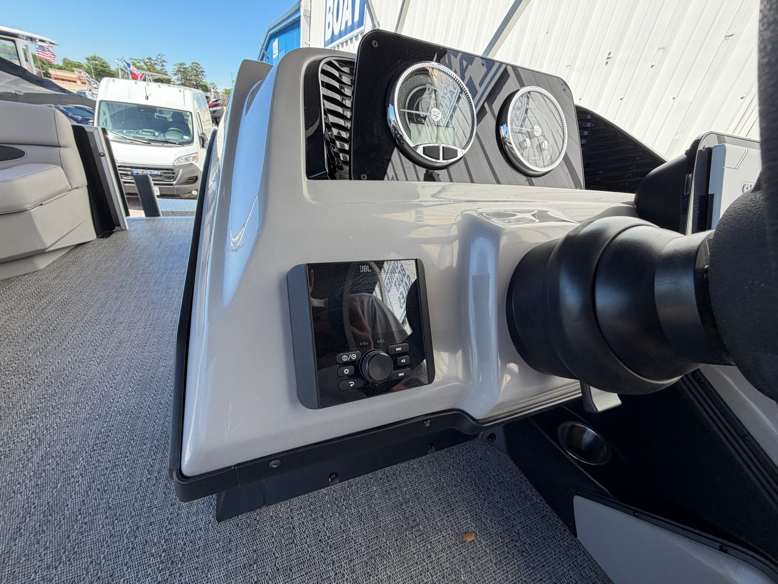 The Barletta Aria A22CC-Platinum stands out with its innovative design and thoughtful features that cater to both relaxation and recreation. The spacious deck layout provides ample room for socializing, sunbathing, or enjoying a picnic on the water. Plush, ergonomically designed seating ensures maximum comfort for all passengers, while the premium materials and finishes reflect Barletta’s commitment to quality and style.This pontoon boat for sale is equipped with a center console layout, offering enhanced visibility and easy access to controls for the captain. The intuitive helm station is designed for convenience, allowing you to navigate with confidence and ease. The open floor plan makes it simple to move around the boat, whether you’re casting a line, setting up for a meal, or just stretching out to relax.