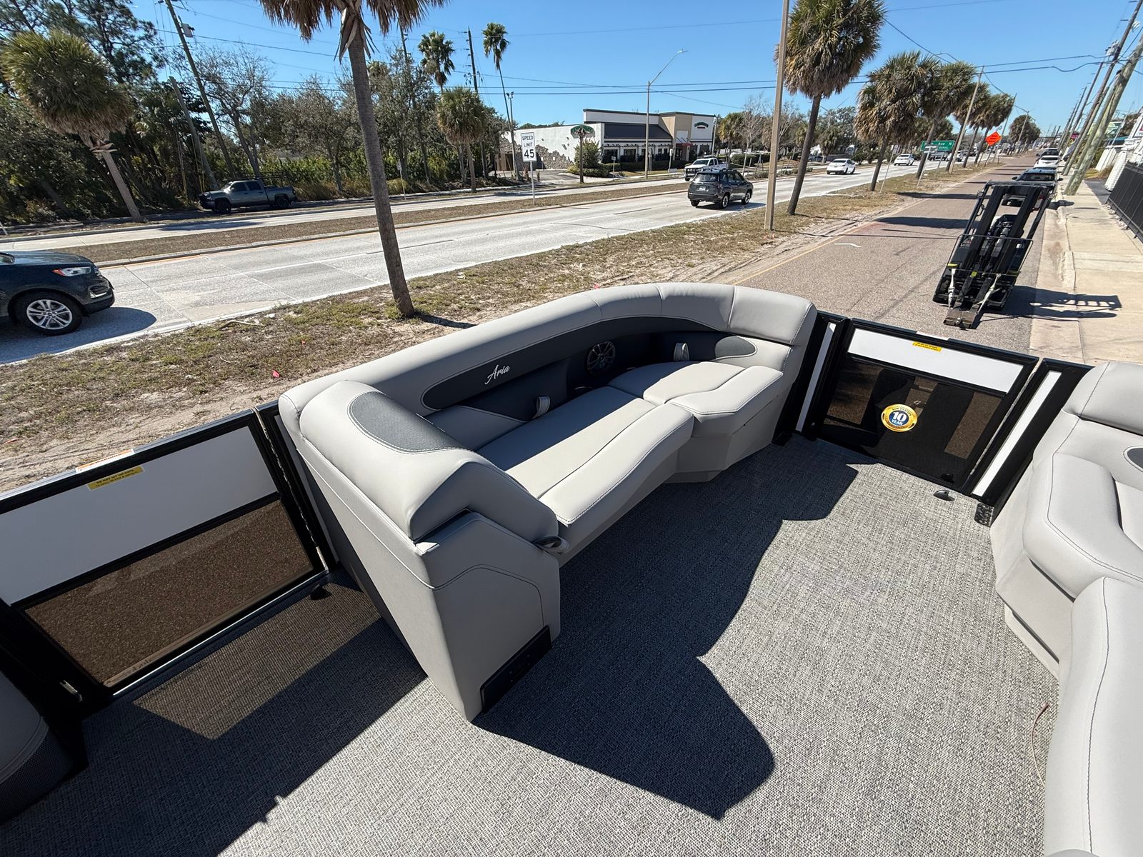 This Barletta boat for sale is the perfect companion for a wide range of activities. Imagine gathering your family for a day of swimming and picnicking, or inviting friends aboard for an evening cruise under the stars. The spacious deck and comfortable seating make it ideal for socializing, while the powerful engine and Triple Toon Package open up opportunities for water sports and exploring new waterways. Whether you are planning a relaxing weekend getaway, a fishing trip, or a celebration on the water, the Aria A22QC-Platinum adapts to your needs and enhances every experience.