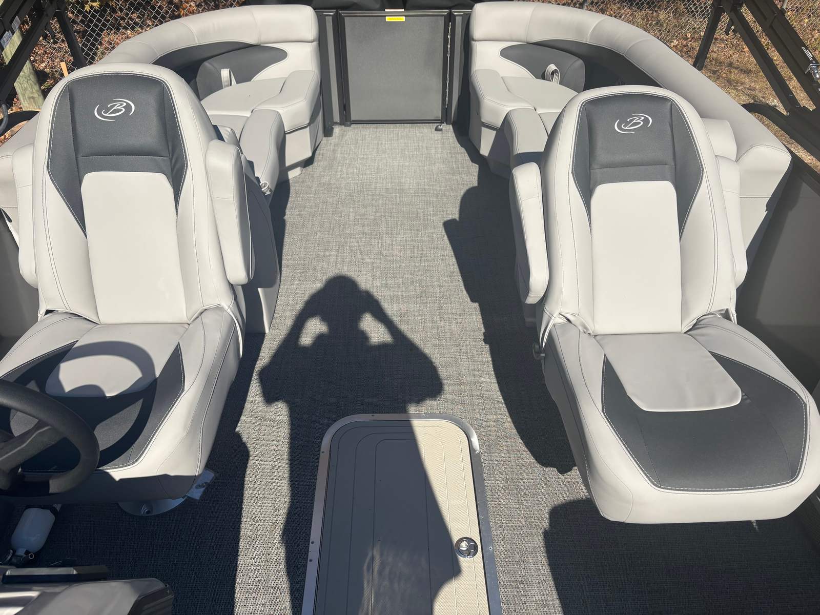 The 2026 Barletta Aria A22QC is a stunning pontoon boat that measures just over 21 feet in length, making it the perfect size for a variety of on-water activities. Its sleek profile and modern design are complemented by the Gray Moonstone Railskin color and the Blackout Package Aria, giving this pontoon a sophisticated and contemporary look that is sure to turn heads at any marina or lake. As a new model, this Barletta boat for sale offers the latest in design innovation and quality craftsmanship, ensuring you enjoy years of reliable performance and enjoyment.