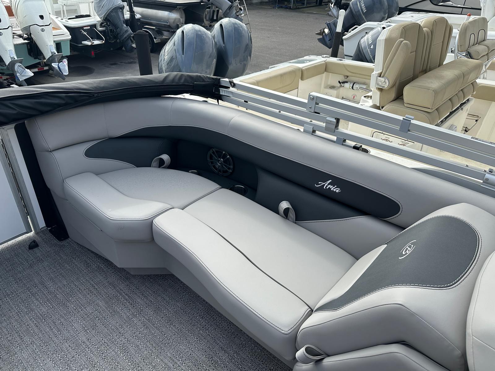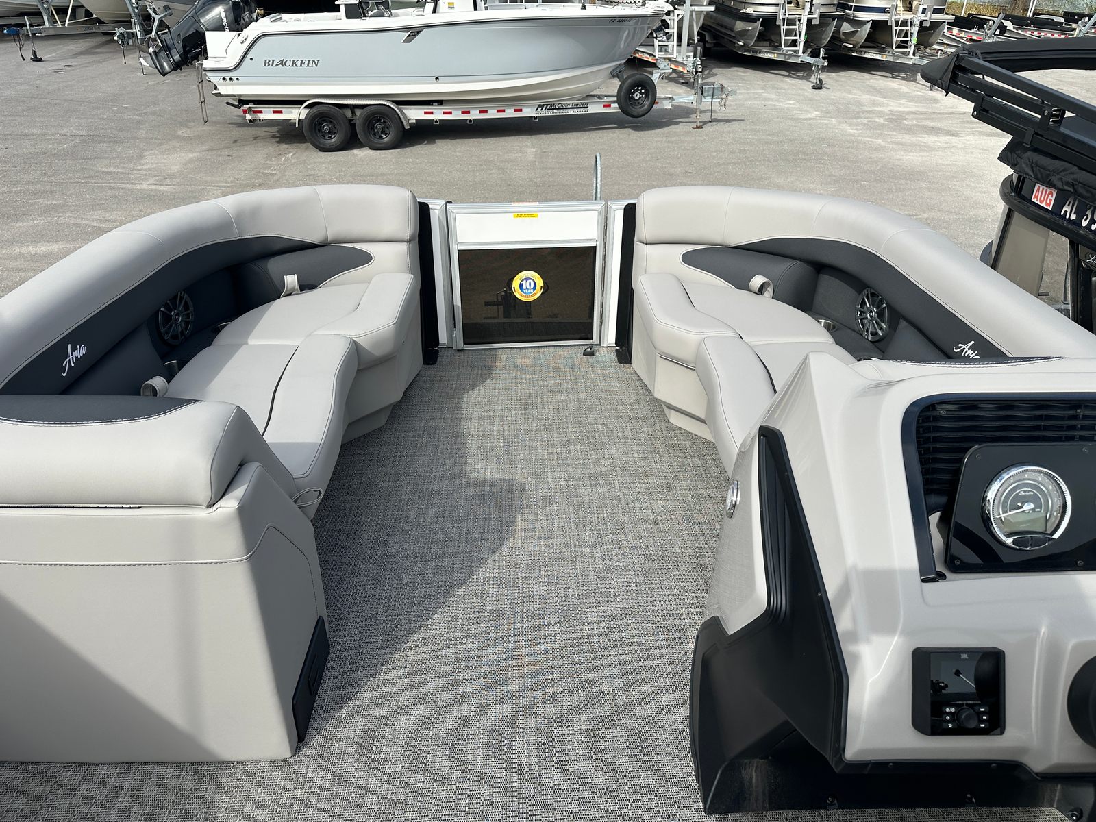 The 2026 Barletta Aria A22QC is packed with features designed to maximize comfort, convenience, and enjoyment. The Tempest Gray furniture provides plush, supportive seating for all your guests, while the Amore Gray flooring offers a stylish and slip-resistant surface that is easy to maintain. The Coastal Edition Aria package brings added flair and resilience, perfect for those who love to explore a variety of aquatic environments.One of the standout features of this pontoon is the Triple Toon Package Aria, which enhances stability and performance, especially when carrying larger groups or cruising at higher speeds. The in-floor midship storage, made possible by the triple toon design, offers ample space for stowing water toys, life jackets, and other essentials, keeping the deck clutter-free and organized.Additional touches like the stainless steel flag pole with an American flag add a sense of pride and personality to your vessel, making it a true reflection of your boating lifestyle. The rigging includes a stainless steel prop, ensuring durability and peak performance throughout your boating adventures.