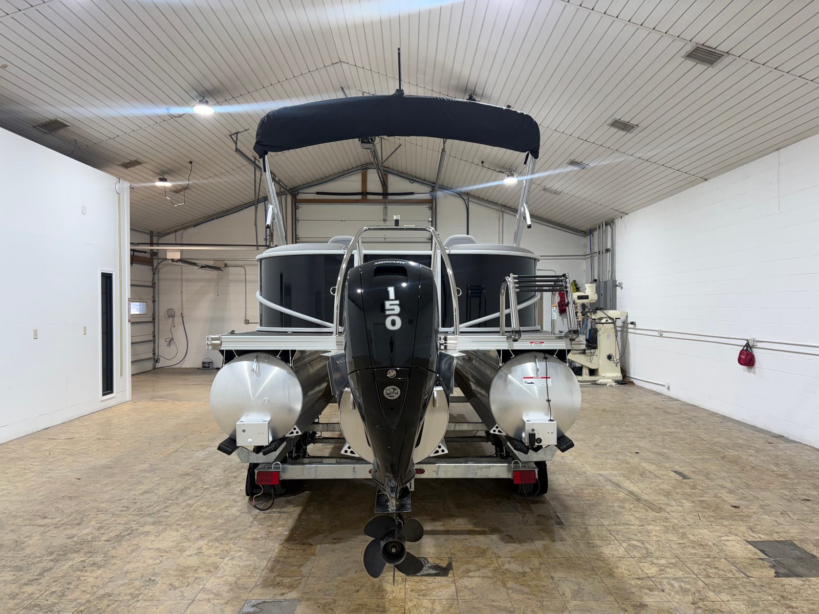 Powered by a single engine with an impressive 150 horsepower, the Barletta Aria A22QC provides a smooth and responsive ride. With only 35 engine hours, you can be confident in the reliability and longevity of this pontoon’s powertrain. The 150 HP engine offers the perfect balance of power and efficiency, allowing you to cruise comfortably, tow water toys, or reach your favorite fishing spots with ease. Whether you are navigating calm lakes or exploring winding rivers, the performance of this Barletta boat for sale ensures every outing is both exhilarating and enjoyable.