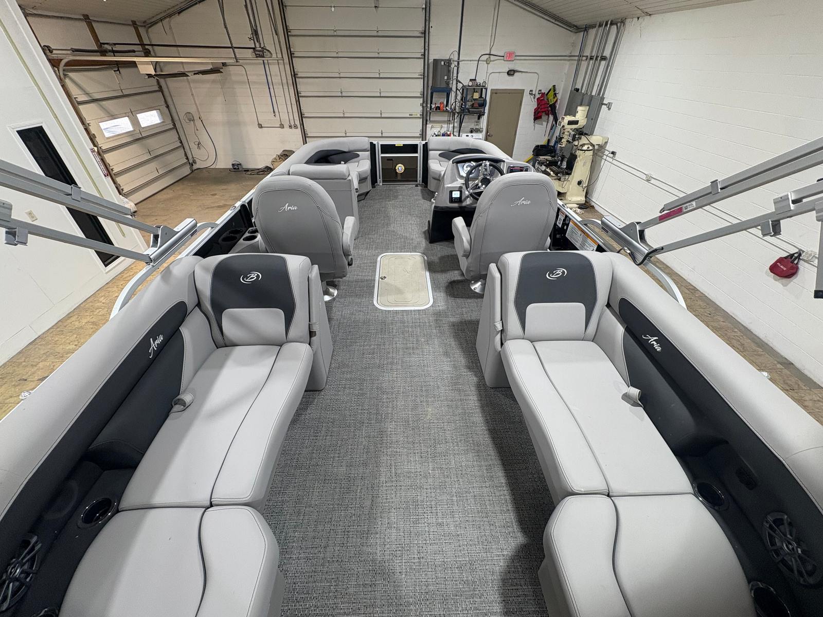The 2025 Barletta Aria A22QC is designed with both functionality and luxury in mind. Its spacious deck layout provides ample room for family and friends to relax, socialize, and soak up the sun. The plush seating arrangements and thoughtfully placed amenities create an inviting atmosphere, perfect for long days on the water. Special features of this pontoon boat include a well-appointed helm, ergonomic seating, and a user-friendly layout that maximizes both comfort and convenience. The high-quality materials and attention to detail are evident throughout, reflecting Barletta’s commitment to excellence.