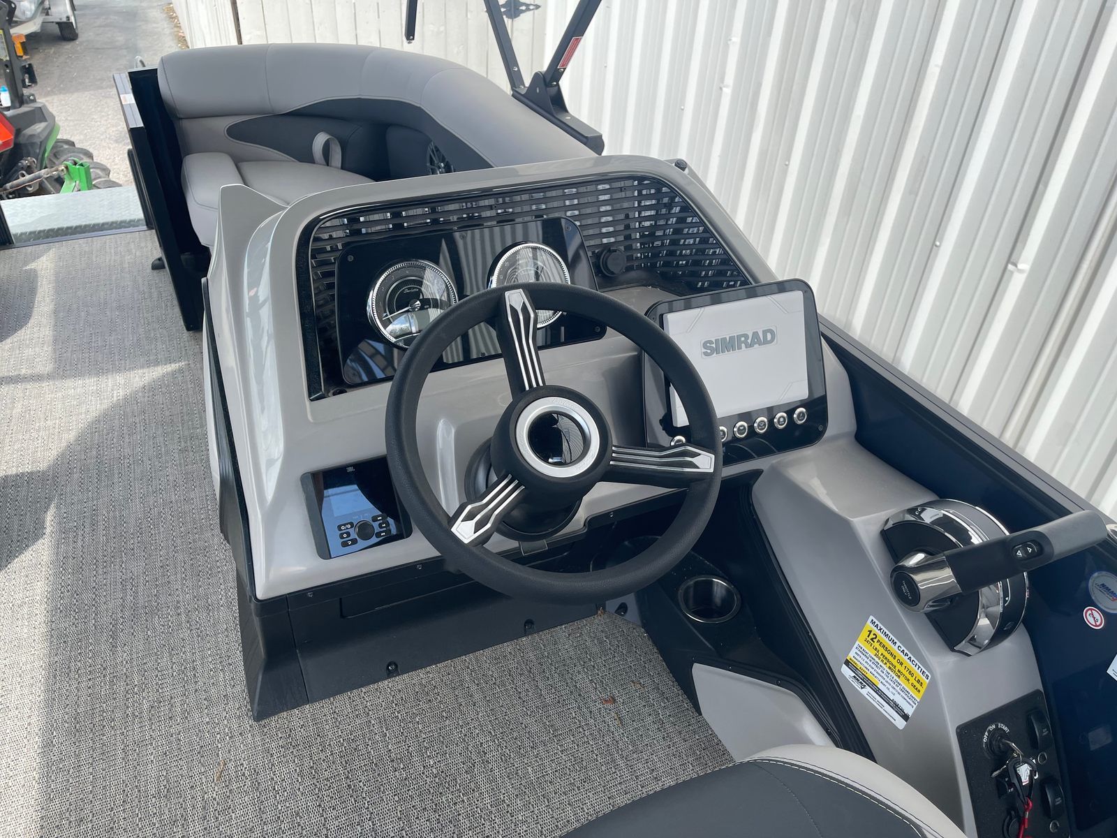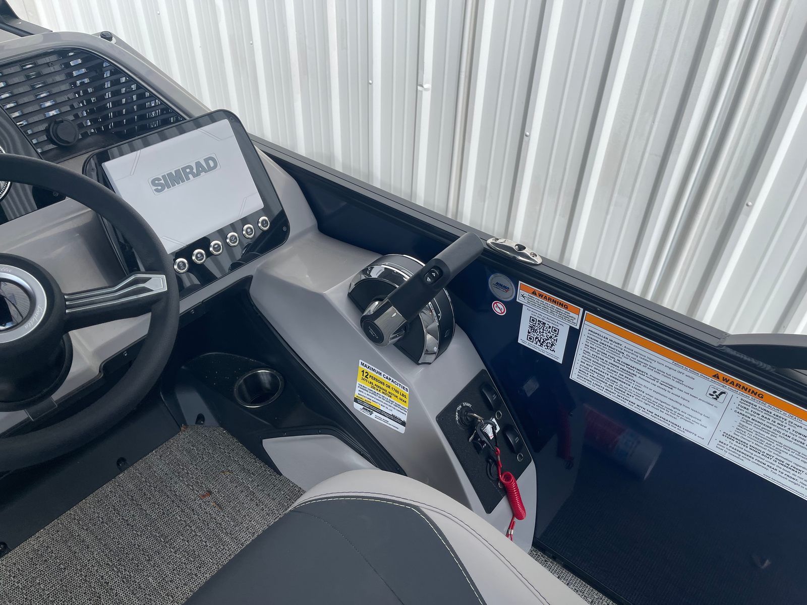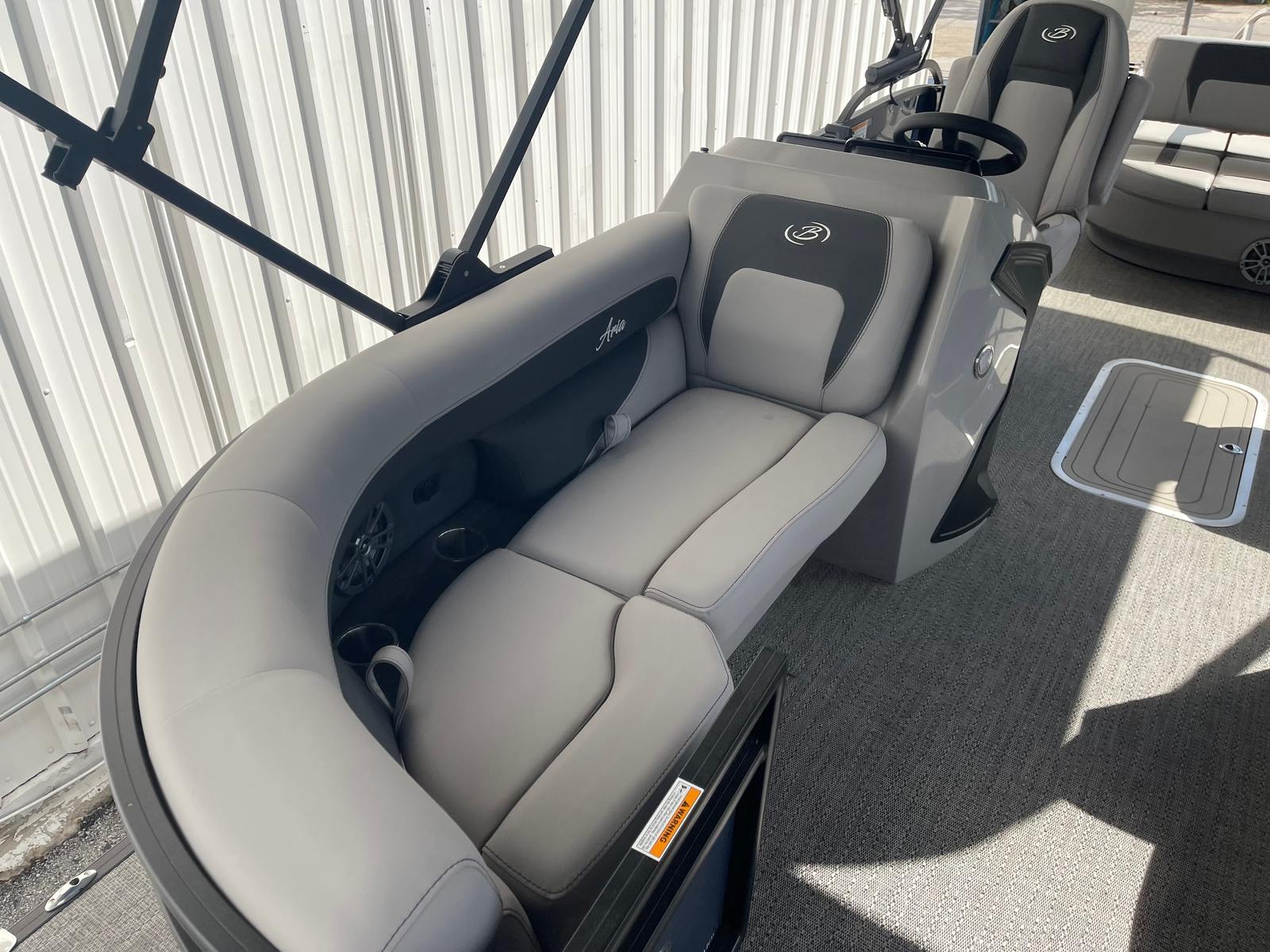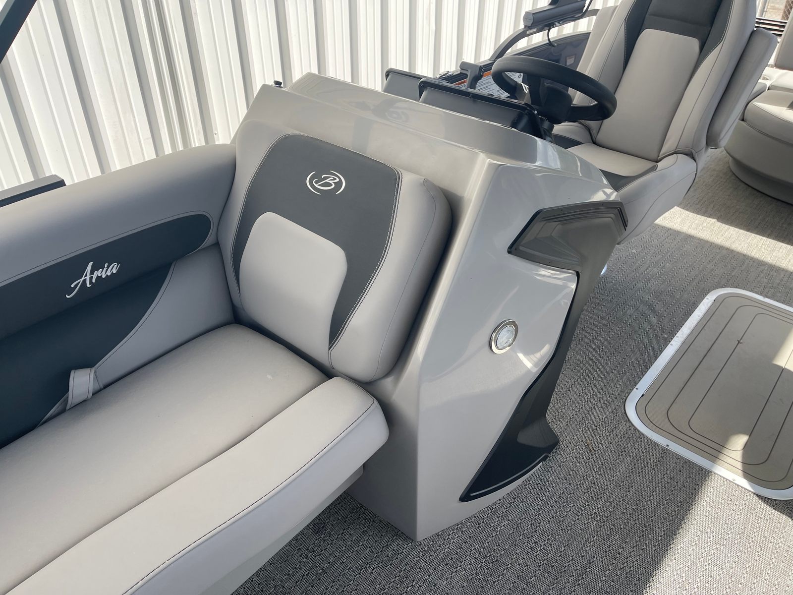 Step aboard the Barletta Aria A22UC-Platinum and discover a world of premium features designed to elevate your boating experience. The Railskin Color Aria in Winter White gives this pontoon a sophisticated and modern look, while the Tempest Gray furniture offers plush seating and a stylish aesthetic. The Amore Gray flooring is both elegant and durable, providing a comfortable surface that’s easy to maintain. The Double Bimini canvas ensures you and your guests stay cool and protected from the sun, allowing for extended enjoyment during hot summer days.Navigation is a breeze with the advanced Eagle 5 GPS helm, giving you confidence and precision whether you’re exploring new waters or returning to your favorite spot. The Triple Toon Package Aria enhances stability and performance, making this pontoon boat ideal for a variety of activities. Every detail of the Aria A22UC-Platinum is thoughtfully designed to maximize comfort, convenience, and enjoyment.