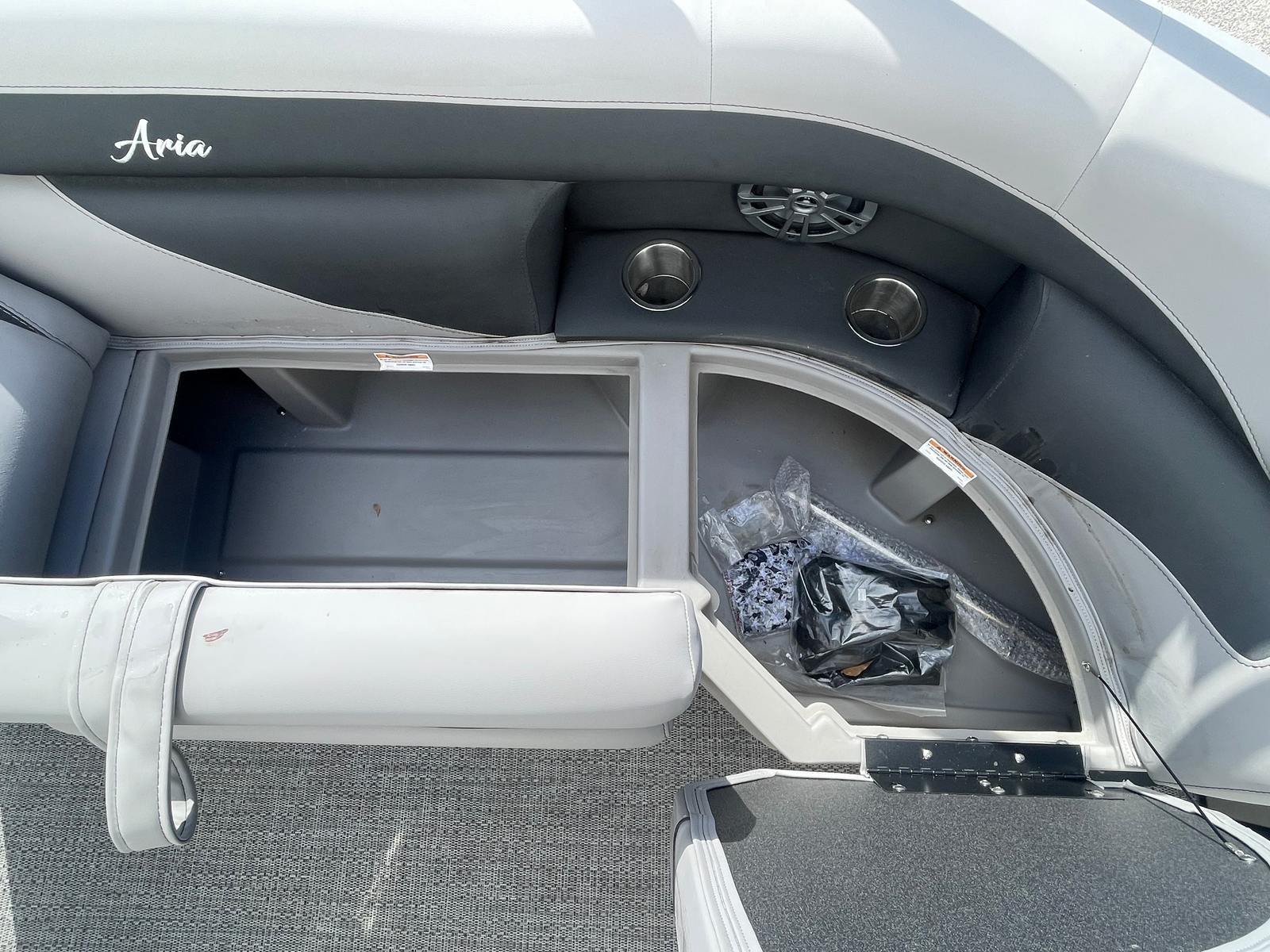 Practicality meets luxury in the Barletta Aria A22UC-Platinum. The thoughtfully designed storage solutions make it easy to keep your gear organized and out of the way, so you can focus on enjoying your time on the water. Docking is a breeze thanks to the boat’s manageable size and responsive handling, making it accessible for boaters of all experience levels. The efficient engine not only provides impressive power but also helps you make the most of your fuel, allowing for longer days of adventure without frequent stops.This pontoon boat is perfect for a variety of activities, from leisurely cruises to action-packed water sports. Its spacious layout accommodates everything from coolers and picnic baskets to fishing gear and water toys, ensuring that you are always prepared for whatever the day brings. The Aria A22UC-Platinum’s user-friendly design makes maintenance simple, so you can spend less time worrying about upkeep and more time making memories.