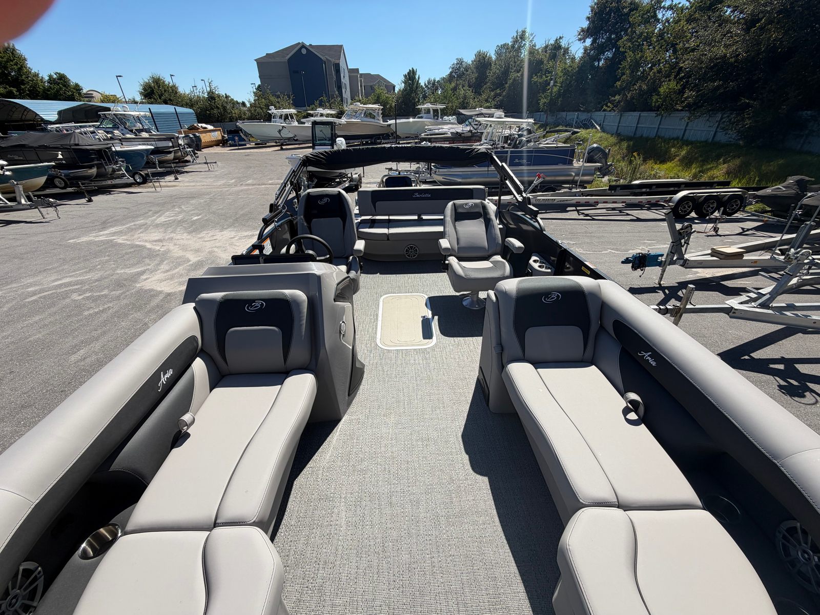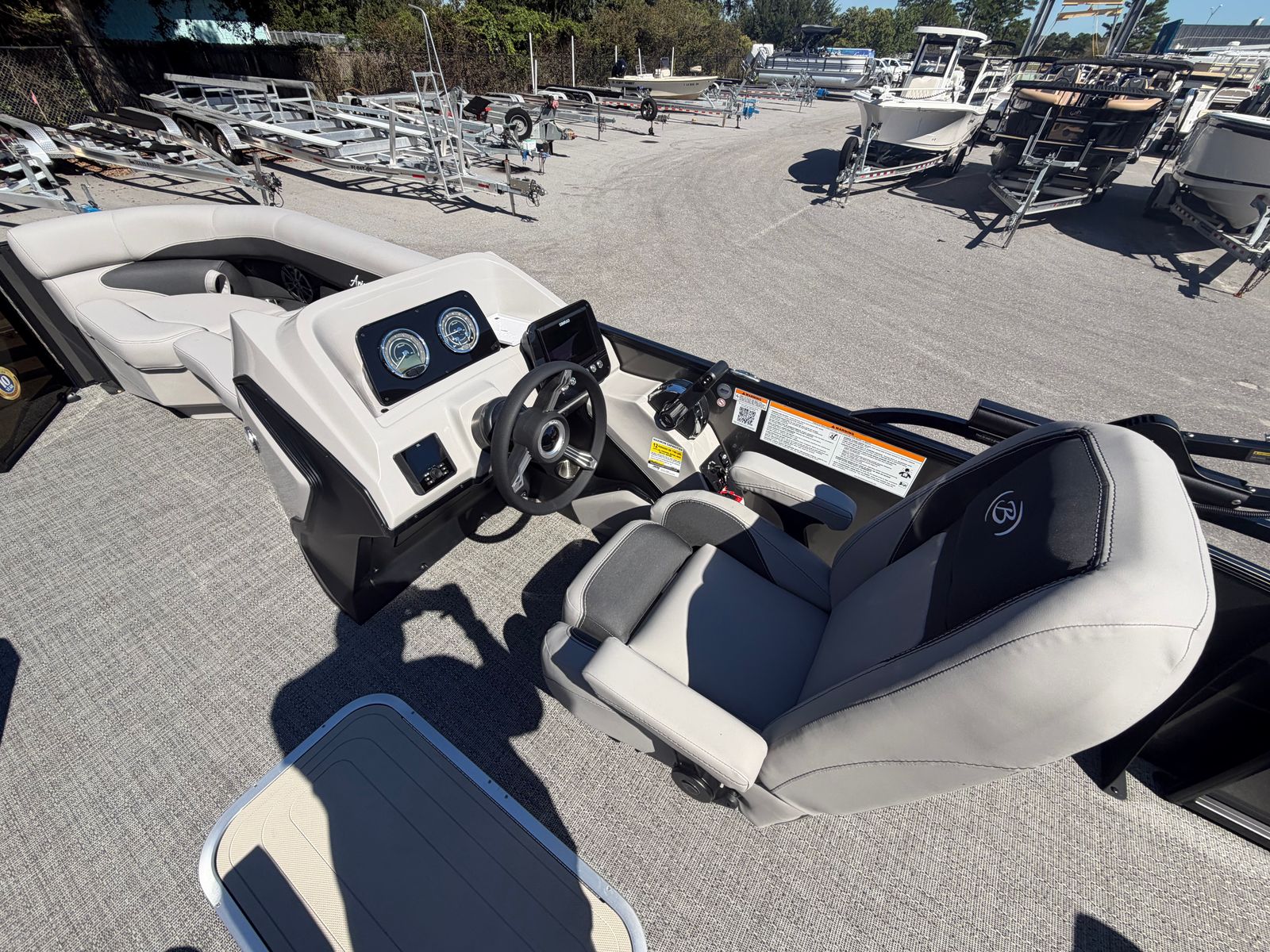 The Barletta Aria A22UC-Platinum is designed with practicality in mind, making ownership as enjoyable as your time on the water. Its manageable length of just over 21 feet makes docking and storage straightforward, whether you’re keeping it at a marina or trailering it to your favorite launch site. The efficient Mercury 200L FourStroke engine helps keep fuel costs down, so you can spend more time cruising and less time refueling. The durable Amore Gray flooring is easy to clean and maintain, while the robust hull design ensures longevity and peace of mind. The thoughtful layout provides ample space for gear, refreshments, and personal items, so you’re always prepared for a day of adventure. The power assist steering makes maneuvering effortless, even in tight spaces, and the stainless steel prop adds to the boat’s overall efficiency and performance.