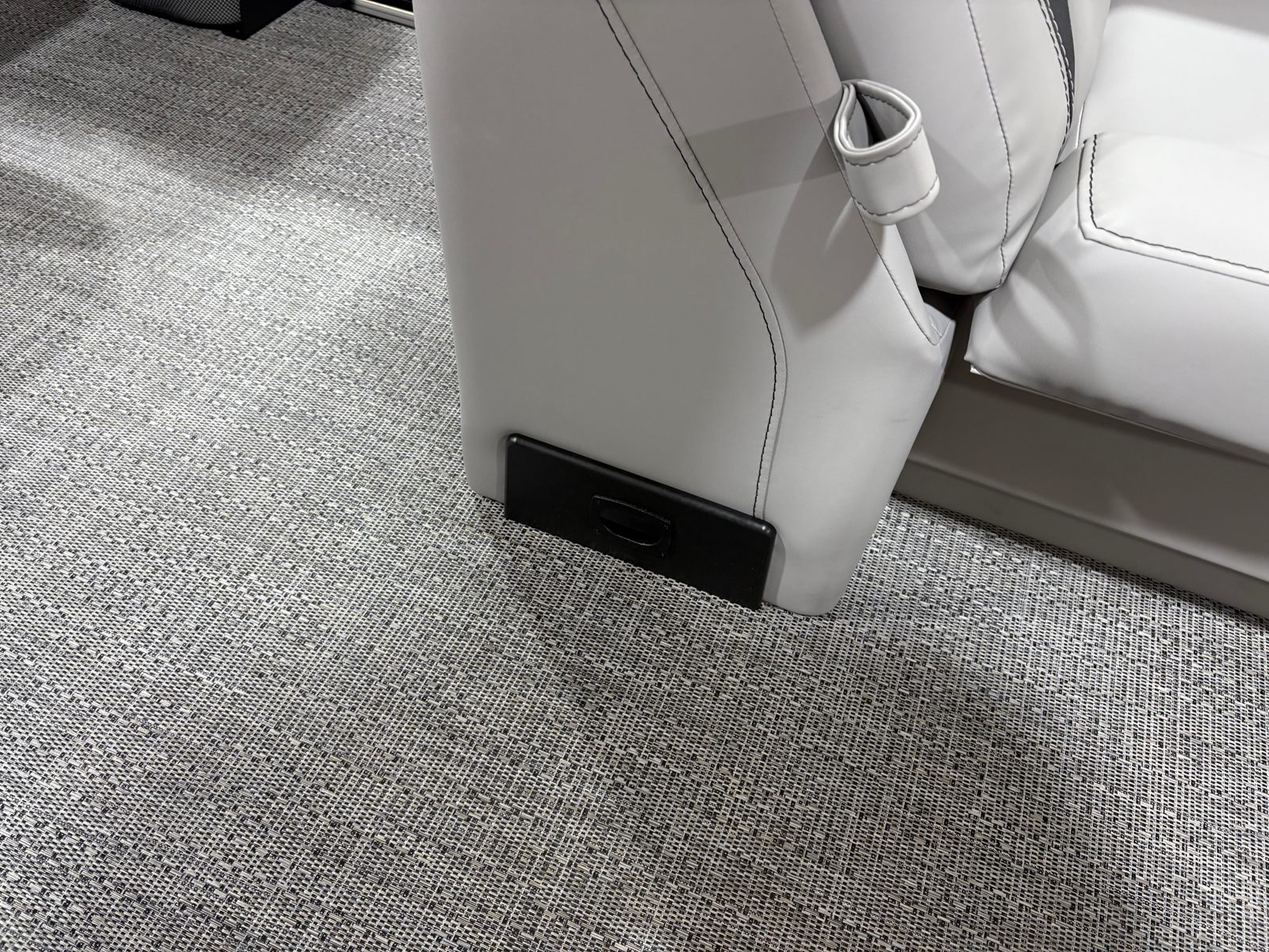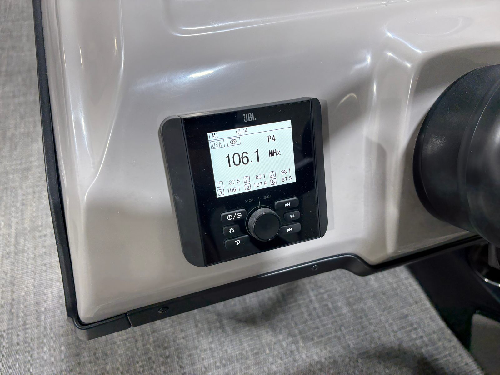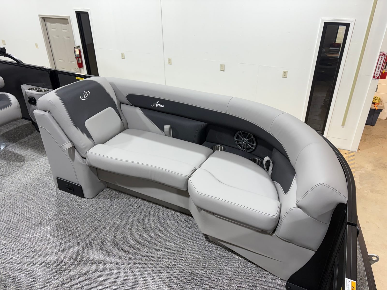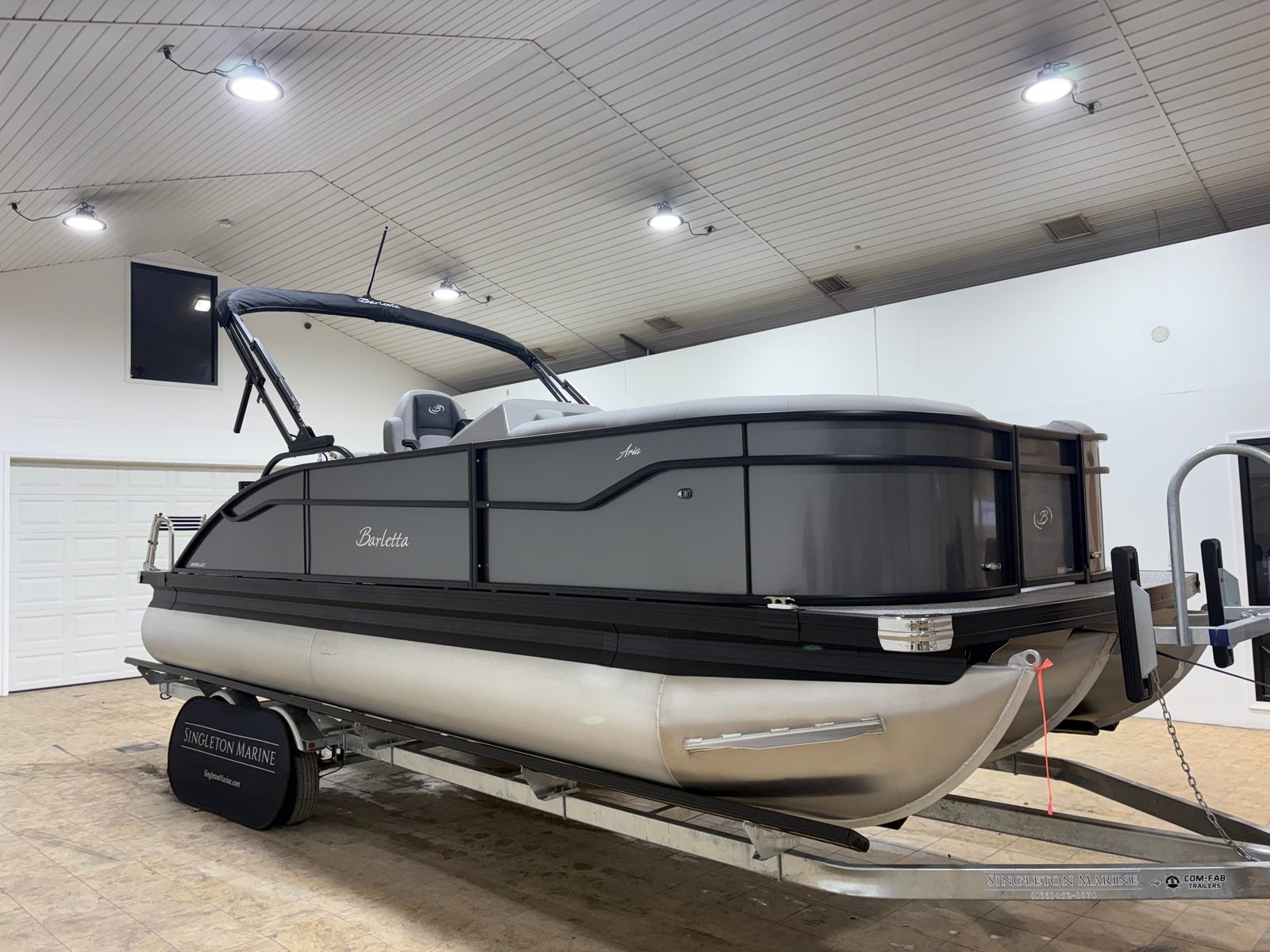 This Barletta pontoon boat is packed with special features designed to elevate your time on the water. The Railskin Color Aria in Gray Moonstone and the Blackout Package Aria give the exterior a sleek, modern look that’s sure to impress. Inside, the Tempest Gray furniture provides plush seating and comfort, while the Amore Gray flooring adds a touch of elegance and practicality. The Triple Toon Package Aria enhances the boat’s stability and ride quality, making it perfect for a variety of activities. The Mercury pre-rig with power assist and stainless steel prop ensures optimal engine performance and easy handling. For added flair, the exterior features a stainless steel flag pole with an American flag, showcasing your pride and style. The interior boasts in-floor midship storage (available with the Triple Toon package), offering convenient space for gear, water toys, and personal items.