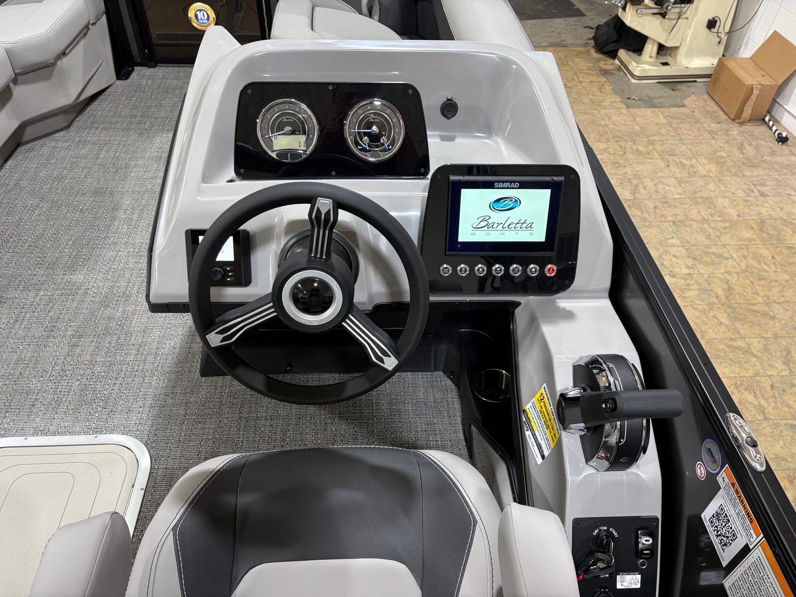 Powering the Barletta Aria A22UC-Platinum is a robust Mercury 200L FourStroke engine, delivering an impressive 200 horsepower. This single-engine setup provides smooth, reliable acceleration and efficient cruising, whether you’re exploring tranquil lakes or enjoying a day of water sports. The Mercury - Mechanical pre-rig with power assist ensures effortless handling and precise control, making navigation a breeze for both seasoned captains and newcomers alike. The rigging includes a stainless steel prop, enhancing durability and performance, while the Triple Toon Package Aria offers superior stability and maneuverability, even in choppy waters.