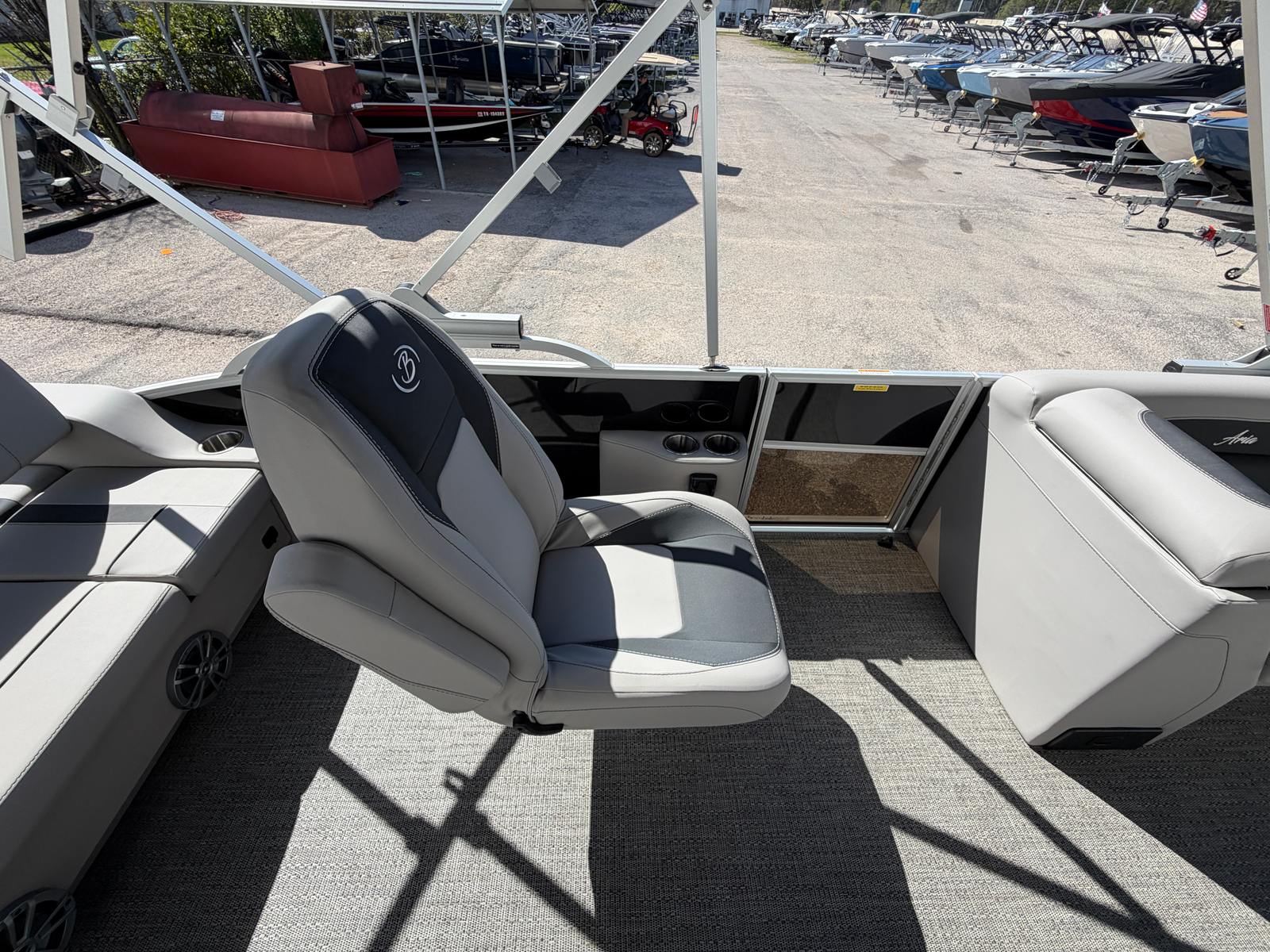 The Barletta Aria A22UC is loaded with features that elevate your boating experience. The striking Black Diamond Railskin not only adds visual appeal but also provides durability and protection. Inside, the Tempest Gray furniture offers plush seating for family and friends, while the Amore Gray flooring is both stylish and easy to maintain, ensuring your boat looks great season after season.The Triple Toon Package Aria is a standout feature, giving the pontoon enhanced buoyancy and stability, perfect for larger groups or active days on the water. The double bimini provides ample shade, allowing you to relax comfortably even during the hottest summer afternoons. The stainless steel flag pole with an American flag adds a patriotic touch and a sense of pride as you cruise your favorite waterways.Navigation is a breeze with the Eagle 5 GPS, which helps you chart your course, track your speed, and find the best fishing spots with ease. Every detail, from the rigged engine with stainless steel prop to the thoughtfully designed seating and layout, is crafted to maximize your enjoyment and convenience.