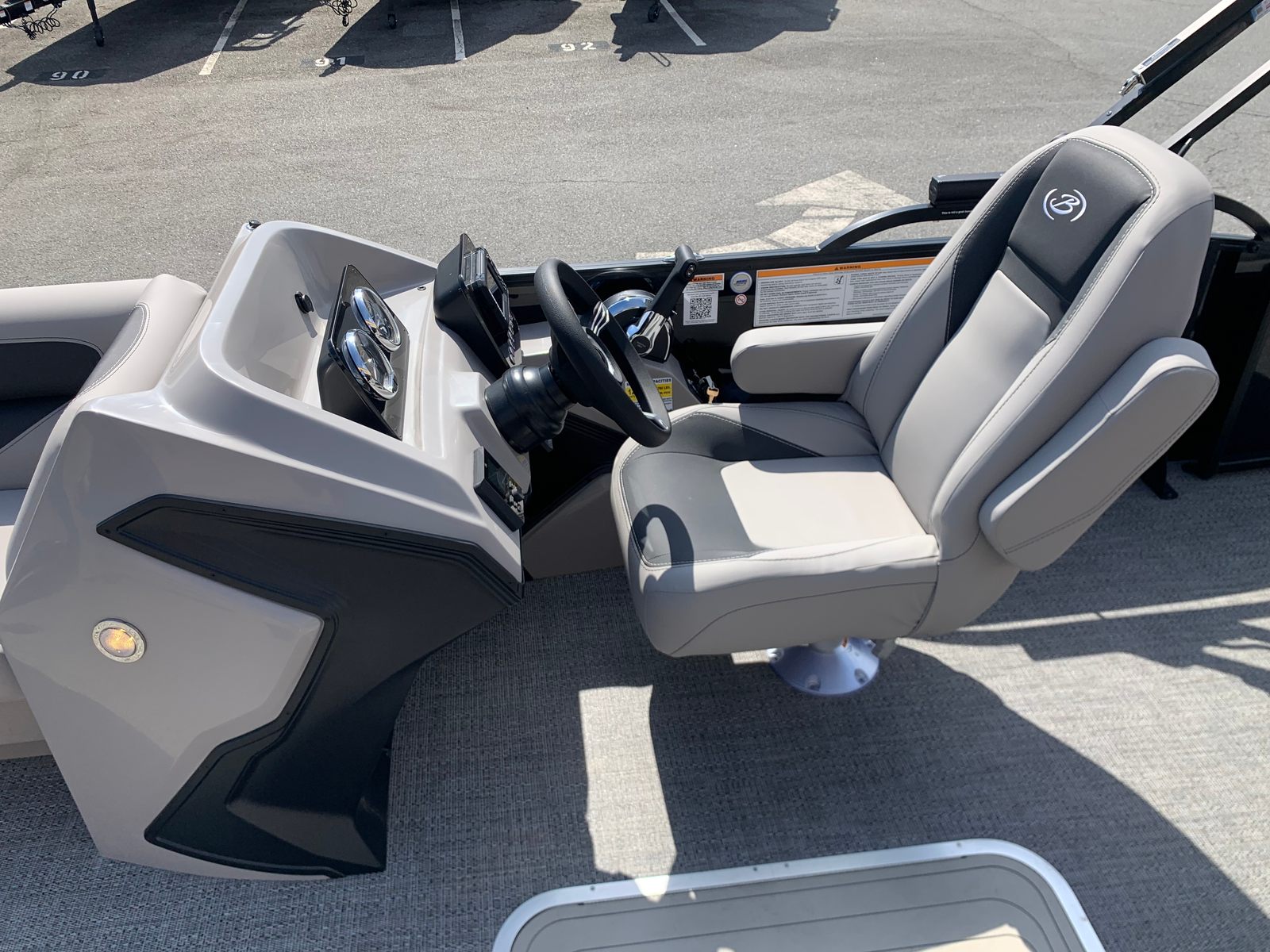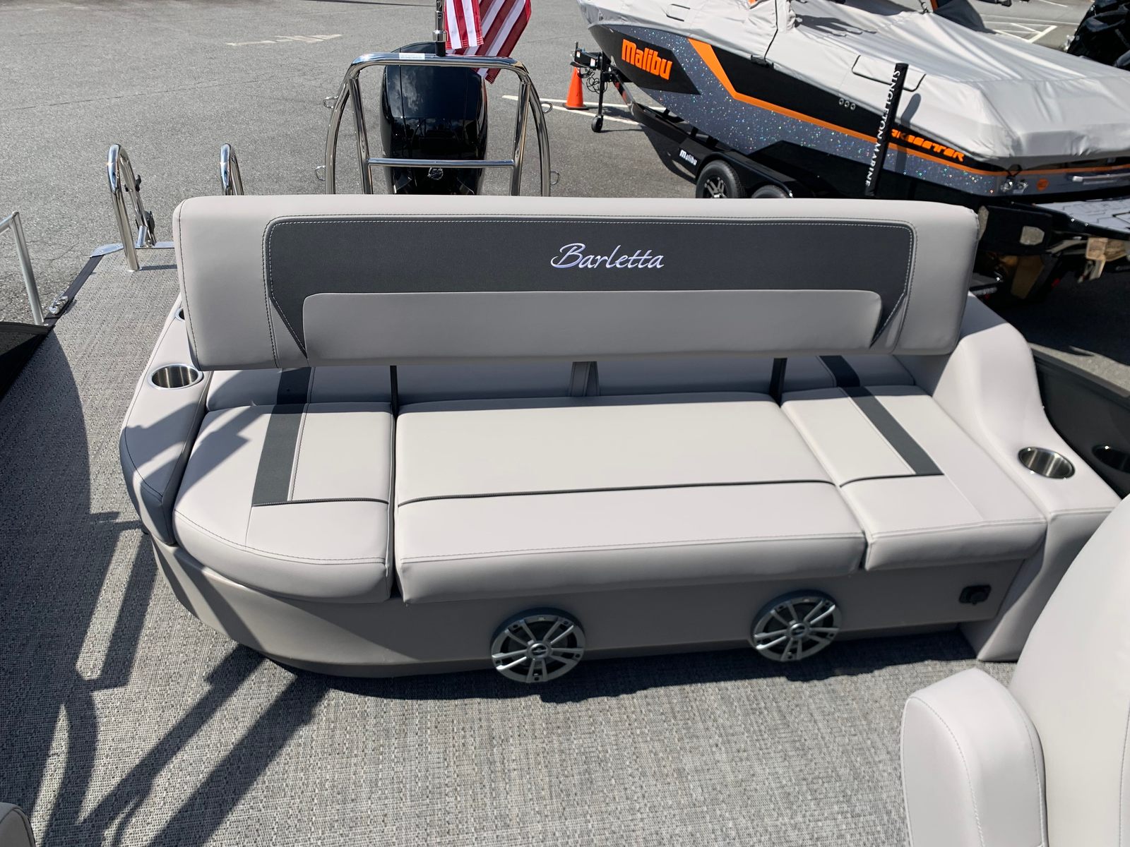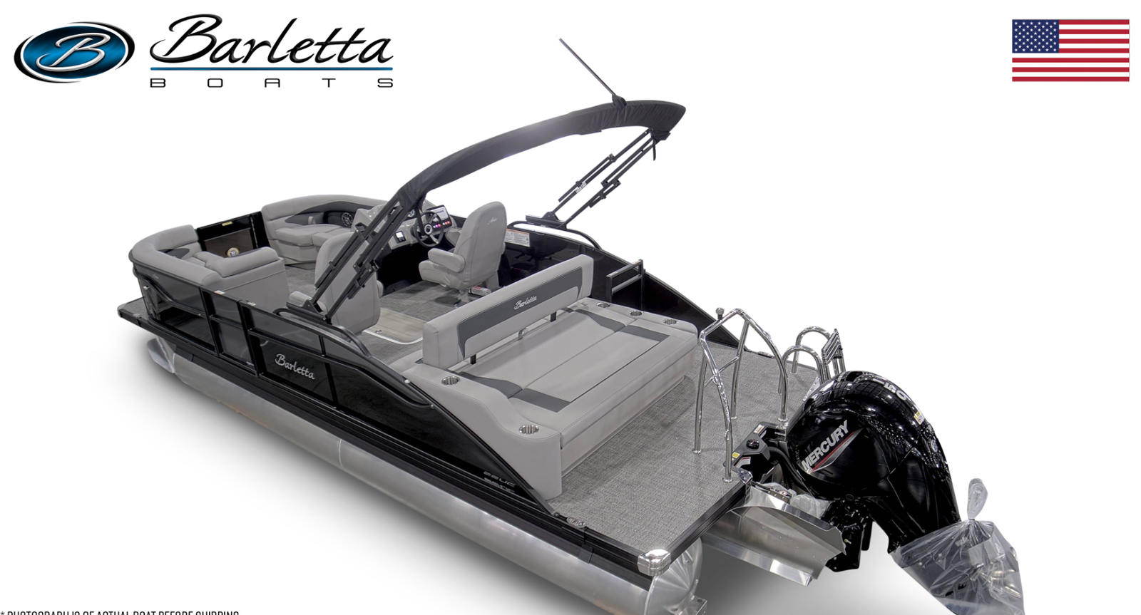 The Barletta Aria A22UC comes loaded with special features that set it apart from other pontoon boats for sale. The Railskin Color Aria in Black Diamond and the Railskin Accent Aria in Gray Moonstone create a striking visual appeal, while the Blackout Package Aria adds a touch of sophistication and modern flair. The Tempest Gray furniture offers plush seating and a contemporary look, complemented by the Amore Gray flooring that’s both stylish and easy to maintain.For those who appreciate attention to detail, the rigging includes a Rig Engine with Stainless Steel Prop, ensuring optimal performance and durability. The Pre-Rig: Mercury - Mechanical setup streamlines the engine installation for hassle-free operation. On the exterior, the Stainless Steel Flag Pole with an American Flag adds a patriotic touch and a sense of pride to your boating experience.