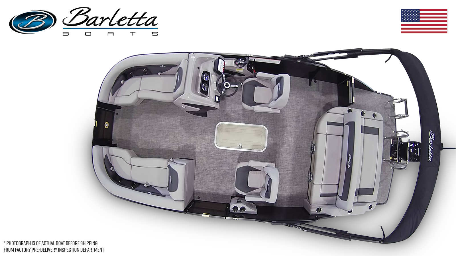 The Barletta Aria A22UC is loaded with features that set it apart from other pontoon boats for sale. The Railskin Color Aria in Black Diamond, paired with the Blackout Package Aria, gives this boat a bold and sophisticated exterior look. The stainless steel flag pole with an American flag adds a touch of patriotism and elegance, making a statement wherever you go.Step aboard and you will be greeted by Tempest Gray furniture, offering both comfort and style. The Amore Gray flooring is not only visually appealing but also practical, providing a durable and easy-to-clean surface for all your adventures. The Triple Toon Package Aria enhances stability and performance, ensuring a smooth and enjoyable ride even when the water gets choppy.One of the standout features of the Aria A22UC is the in-floor midship storage, providing ample space to stow away gear, water toys, and personal items. This thoughtful addition keeps the deck clutter-free and ensures that everything you need is within easy reach.