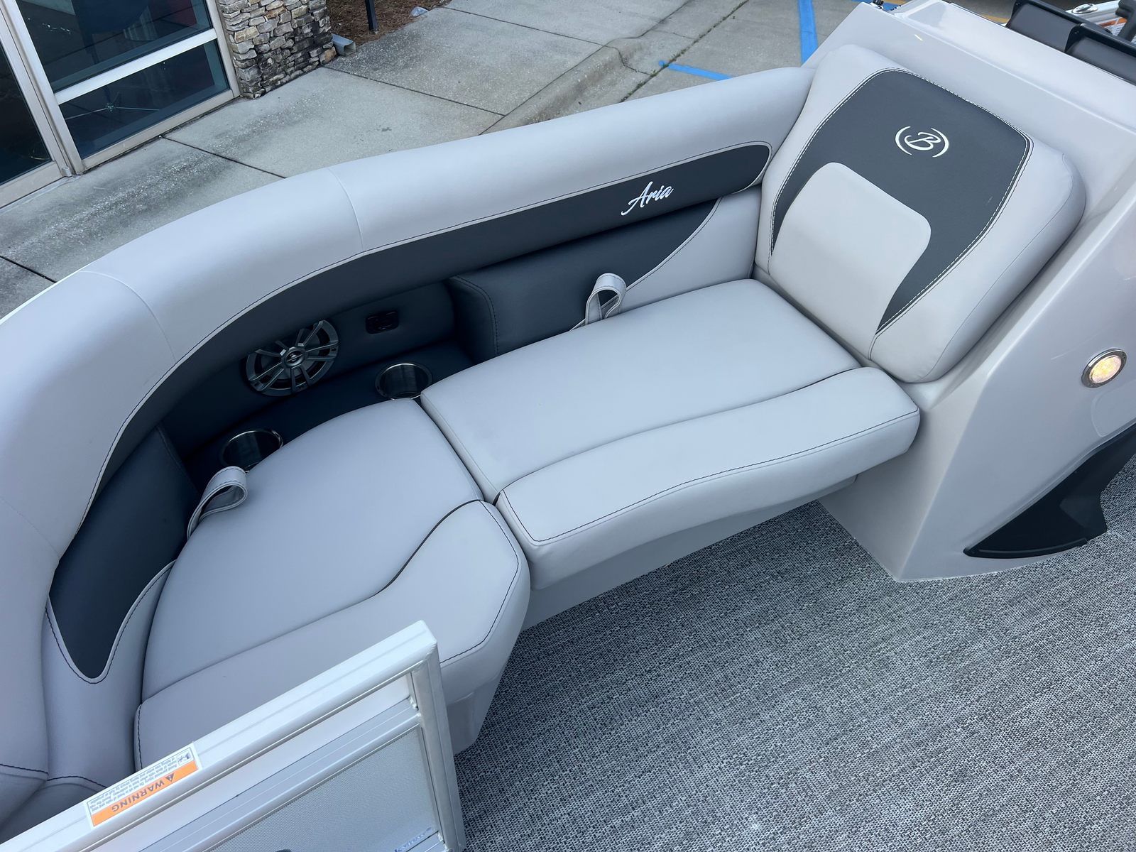 The Barletta Aria A22UC is packed with special features designed to enhance your time on the water. The Railskin Color Aria in Winter White not only adds visual appeal but also provides durability against the elements. The Tempest Gray furniture offers plush seating and ergonomic support, while the Amore Gray flooring is both stylish and easy to maintain. The Triple Toon Package Aria delivers superior buoyancy and stability, making every journey safe and comfortable.A standout feature is the in-floor midship storage, providing ample space to stow your gear, water toys, or picnic essentials. The clipped playpen cover with poles offers protection from the sun and rain, ensuring your investment stays in pristine condition. For a touch of patriotic flair, the stainless steel flag pole with an American flag adds a unique and eye-catching detail to your pontoon.