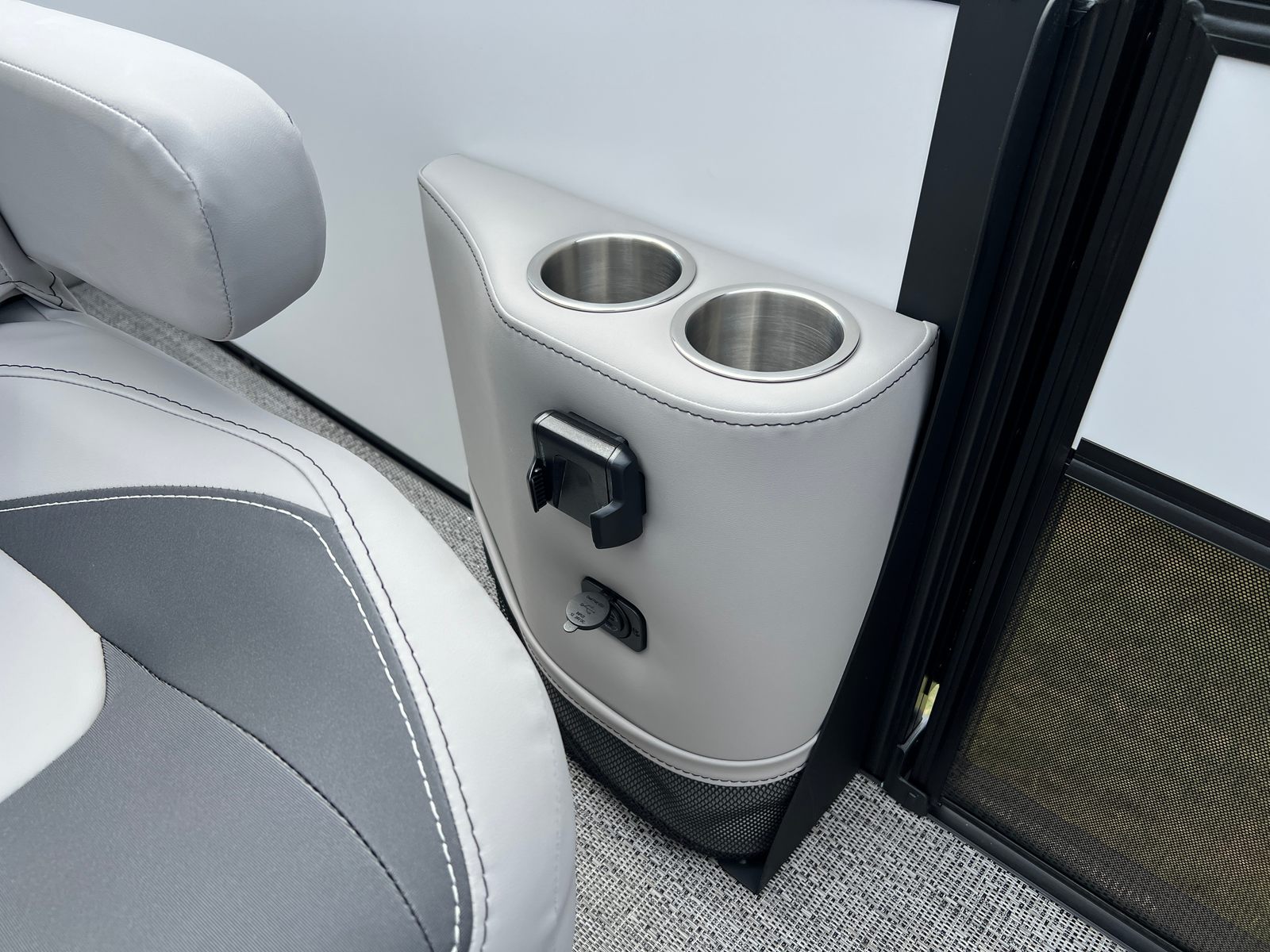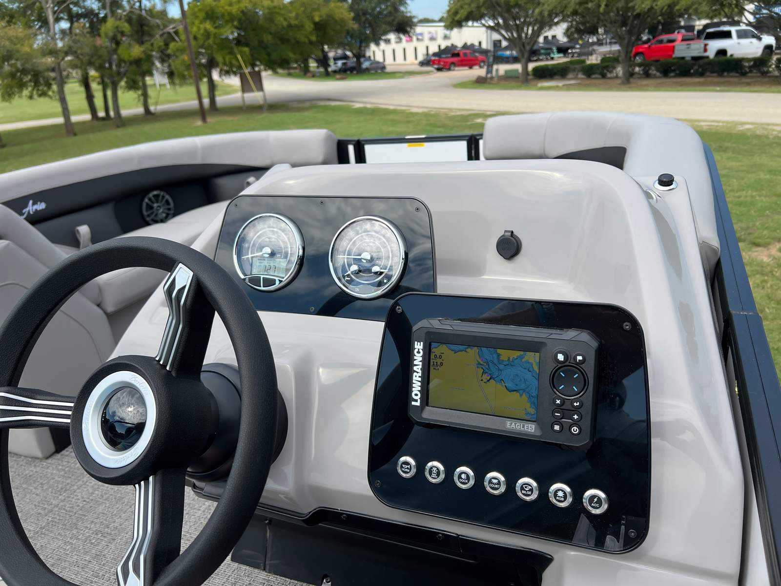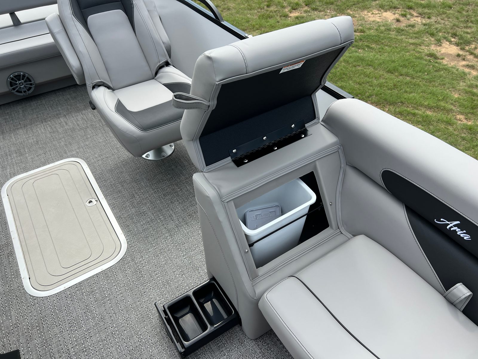 The Barletta Aria A22UC is loaded with premium features designed to maximize comfort, convenience, and style. The Railskin Color Aria in Winter White and the Black Diamond accent create a visually striking exterior, while the Blackout Package Aria adds a touch of modern sophistication. Inside, the Tempest Gray furniture offers plush seating and ergonomic support, perfect for relaxing or socializing with guests. The Amore Gray flooring is both stylish and practical, providing a durable surface that stands up to the rigors of boating life.The Triple Toon Package Aria delivers enhanced stability and buoyancy, making this pontoon ideal for larger groups and active days on the water. The Mercury (M) 150L Four Stroke engine is pre-rigged for mechanical operation, ensuring seamless integration and reliable performance. Rigging with a stainless steel prop adds efficiency and longevity, while the exterior stainless steel flag pole with an American flag showcases your pride and adds a patriotic touch to your boating adventures.