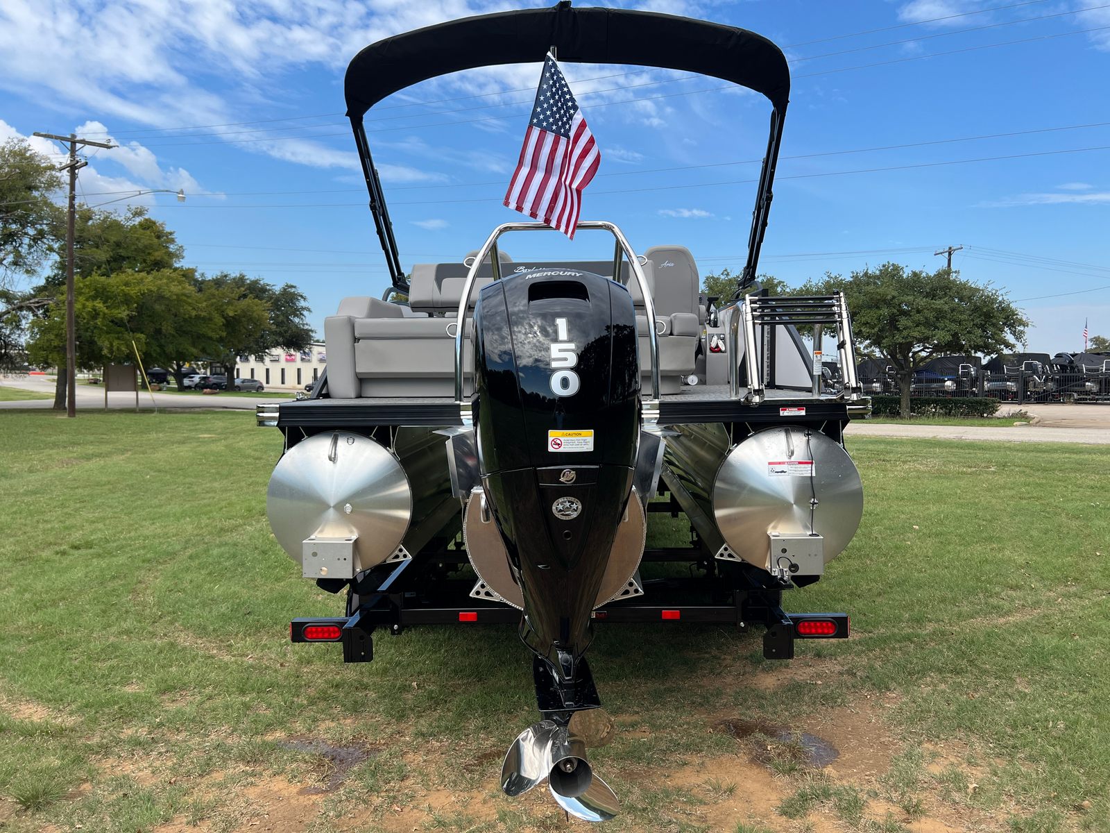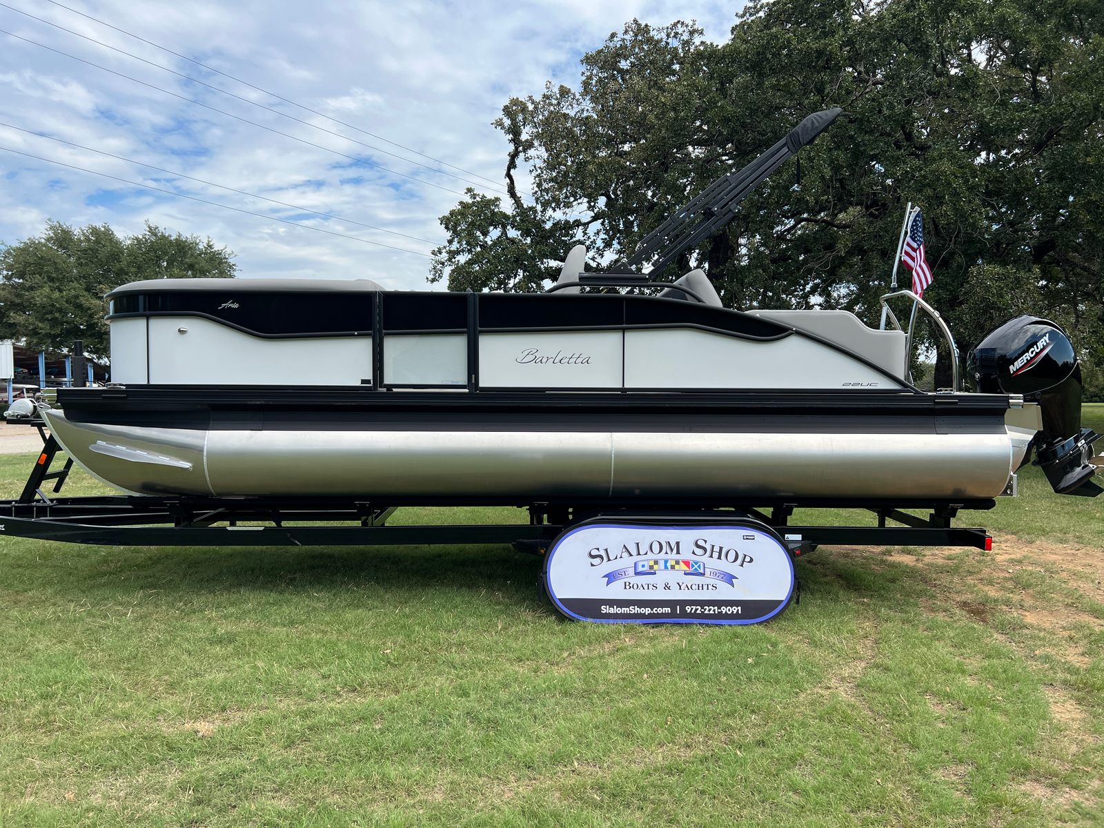 The Barletta Aria A22UC is as practical as it is stylish, offering features that make ownership easy and enjoyable. The spacious deck and smart layout provide ample storage for gear, snacks, and essentials, keeping your space organized and clutter-free. The efficient Mercury engine helps maximize fuel economy, so you can spend more time on the water and less time refueling. Docking is a breeze thanks to the responsive handling and maneuverability provided by the Triple Toon Package Aria, making it simple to navigate marinas and tight spaces.Maintenance is straightforward with high-quality materials and durable finishes throughout, ensuring your pontoon boat stays looking great season after season. The stainless steel flag pole with an American flag adds a unique touch to your vessel, making it easy to spot and adding a sense of pride to your boating experience.