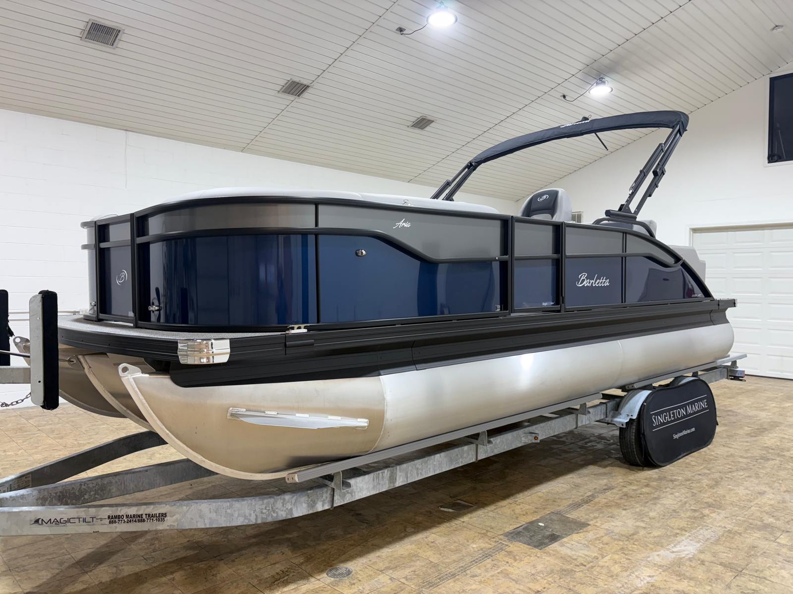 The Barletta Aria A22UC is loaded with special features that set it apart from other pontoon boats for sale. The Railskin Color Aria in Blue Sapphire, complemented by the Railskin Accent Aria in Gray Moonstone, creates a striking visual appeal that’s both elegant and contemporary. The Blackout Package Aria adds a touch of sophistication, making the boat stand out on the water. Inside, the Tempest Gray furniture offers plush comfort and stylish seating, while the Amore Gray flooring provides a durable, easy-to-clean surface that’s perfect for active days on the lake.The Clipped Playpen Cover with poles ensures your boat stays protected from the elements, preserving its pristine condition year after year. The Triple Toon Package Aria boosts performance and stability, making it easier to navigate choppy waters or enjoy high-speed runs. Rigging with a stainless steel prop further enhances efficiency and maneuverability, giving you confidence in every turn and dockside approach.