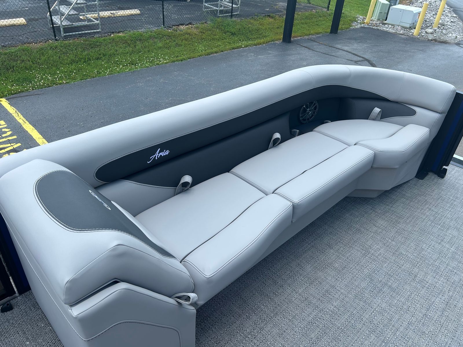 Owning the Barletta Aria A24QC means embracing a lifestyle of relaxation, adventure, and social connection. The spacious deck layout provides plenty of room for guests to spread out, lounge, and enjoy the sunshine. The plush Tempest Gray seating invites you to unwind in comfort, whether you are hosting a lively gathering or enjoying a quiet sunset cruise. The thoughtfully designed storage solutions keep your essentials organized and easily accessible, so you can focus on making memories on the water.The Triple Toon Package Aria enhances the boat's stability, making it ideal for families with children or anyone who values a smooth, steady ride. The powerful Mercury engine ensures you have the speed and agility to explore new destinations, tow inflatables, or simply enjoy the thrill of open water. With its combination of luxury and performance, the Barletta Aria A24QC is perfect for those who want the best of both worlds.
