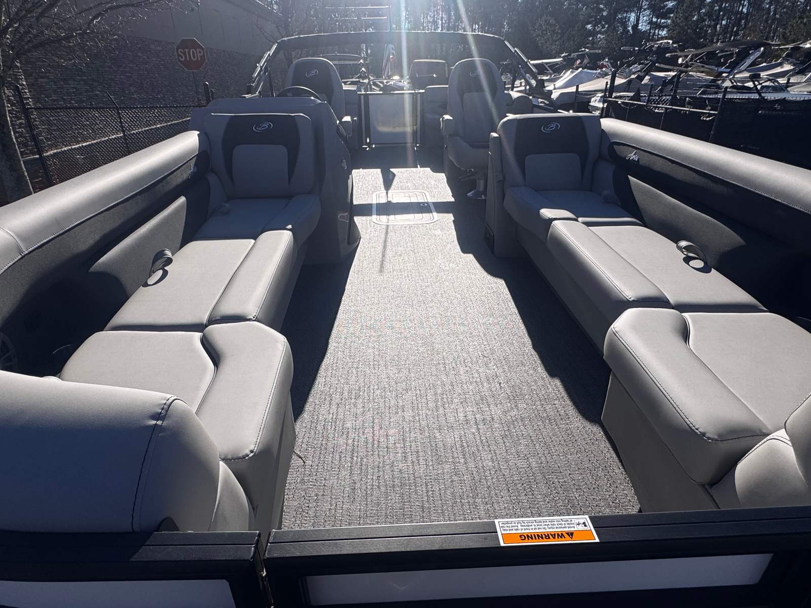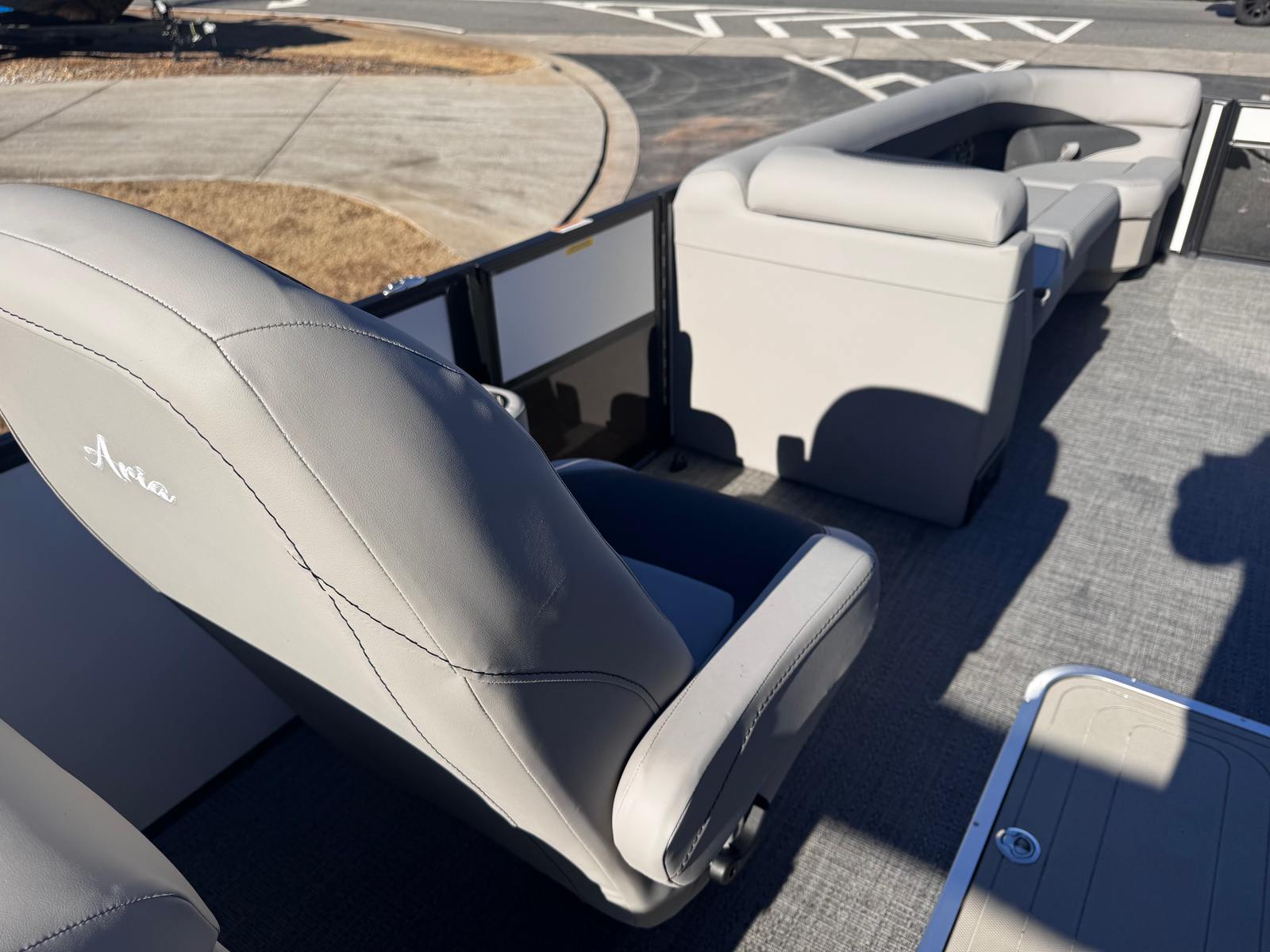 The Barletta Aria A24QC is a brand-new pontoon boat for sale, crafted for those who appreciate quality, comfort, and modern aesthetics. Built in 2026, this pontoon measures an impressive 23.08 feet in length, offering ample space for family, friends, and all your favorite activities. The sleek Railskin Color Aria in Winter White, complemented by the Blackout Package Aria, gives this boat a contemporary and sophisticated look that will turn heads at any marina. The Tempest Gray furniture and Amore Gray flooring create a welcoming and stylish interior, ensuring every moment onboard is enjoyed in comfort and elegance.