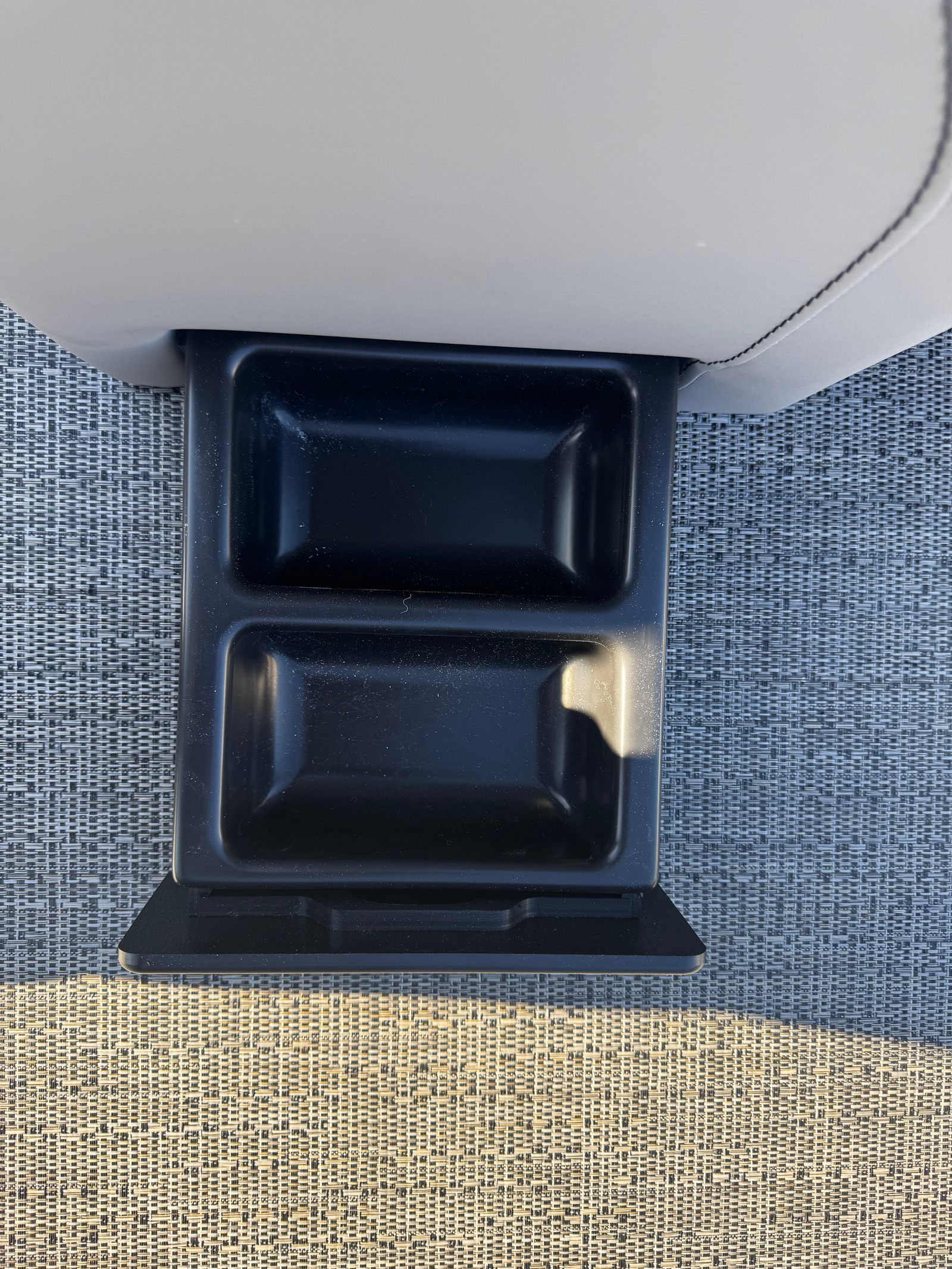 The Barletta Aria A24QC pontoon boat for sale is packed with premium features designed to maximize your enjoyment and convenience. The Blackout Package Aria adds a bold and modern touch to the exterior, while the Winter White Railskin provides a clean and timeless appeal. Inside, the Tempest Gray furniture offers plush seating and ergonomic design, perfect for relaxing or socializing with guests. The Amore Gray flooring is both stylish and practical, providing a comfortable surface that’s easy to maintain.One of the standout features is the in-floor midship storage, offering ample space to stow your gear, water toys, and essentials without cluttering the deck. The stainless steel flag pole with an American flag adds a patriotic flair and a touch of elegance to the boat’s exterior. The Triple Toon Package Aria not only boosts performance but also increases passenger capacity and stability, making it ideal for larger groups and active days on the water.