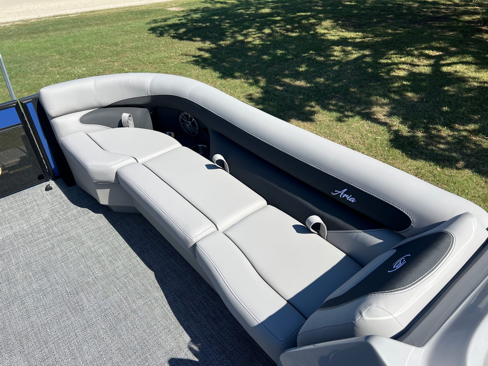 Owning the Barletta Aria A24UC pontoon boat means embracing a lifestyle of fun, relaxation, and connection. The spacious layout is perfect for hosting gatherings, enjoying meals, or simply lounging in the sun. The comfortable Tempest Gray furniture invites you to unwind, while the durable Amore Gray flooring stands up to the rigors of active days on the water. With the Triple Toon Package Aria, you’ll experience superior stability and a smooth ride, making it easy to navigate lakes, rivers, and coastal waters. The powerful Mercury engine ensures you have the speed and reliability to explore new destinations or enjoy watersports with family and friends. Every detail of this Barletta boat for sale is designed to maximize enjoyment and create lasting memories.