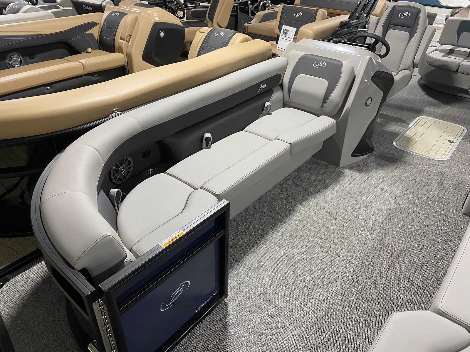 The Barletta Aria A24UC is a 2026 model pontoon boat, measuring an impressive 23.08 feet in length. Its sleek profile and modern design make it an eye-catching addition to any marina or lakefront. With its spacious deck and thoughtfully arranged seating, this pontoon is built for both relaxation and entertainment. Whether you’re hosting a lively gathering or enjoying a peaceful sunset cruise, the Aria A24UC offers the perfect setting for every occasion.