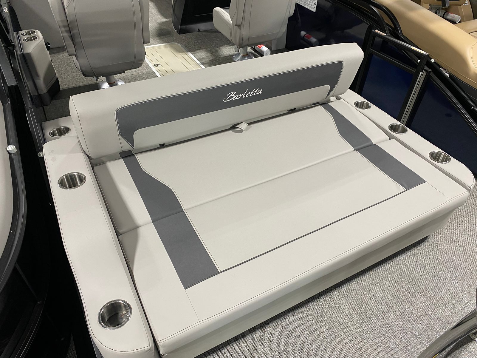 Owning the Barletta Aria A24UC means embracing a lifestyle of comfort, convenience, and fun. The spacious layout encourages socializing, making it easy to host gatherings or spend quality time with loved ones. The premium furniture and flooring ensure everyone on board enjoys a relaxing ride, while the advanced helm technology keeps you in control at all times.The triple toon configuration not only boosts performance but also enhances safety and stability, making this pontoon ideal for families and groups. The in-floor midship storage is perfect for keeping water toys, life jackets, and other essentials within easy reach, so you can focus on enjoying your day without worrying about clutter.