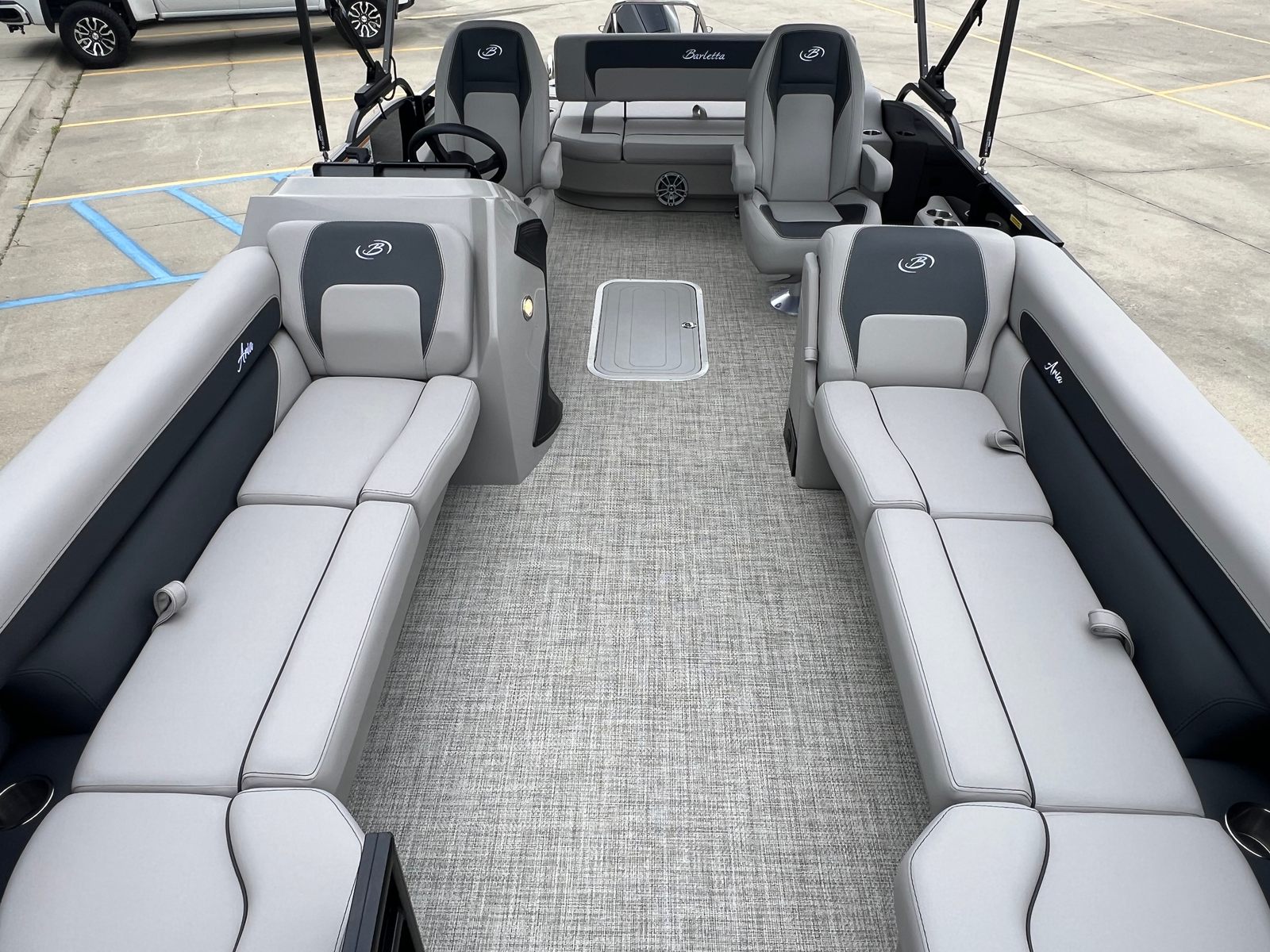 The Barletta Aria A24UC is as practical as it is stylish. The in-floor midship storage provides a secure place for all your boating essentials, while the triple toon design enhances stability and makes docking and maneuvering easier. The power assist steering system ensures effortless control, even in tight spaces or challenging conditions. With its efficient Mercury FourStroke engine, you can enjoy extended days on the water without frequent refueling stops, maximizing your time for fun and adventure.This pontoon boat is ideal for a variety of activities, from leisurely cruises and family picnics to fishing trips and water sports. The versatile layout and thoughtful features make it easy to adapt the Aria A24UC to your preferred style of boating, ensuring that every outing is tailored to your needs.