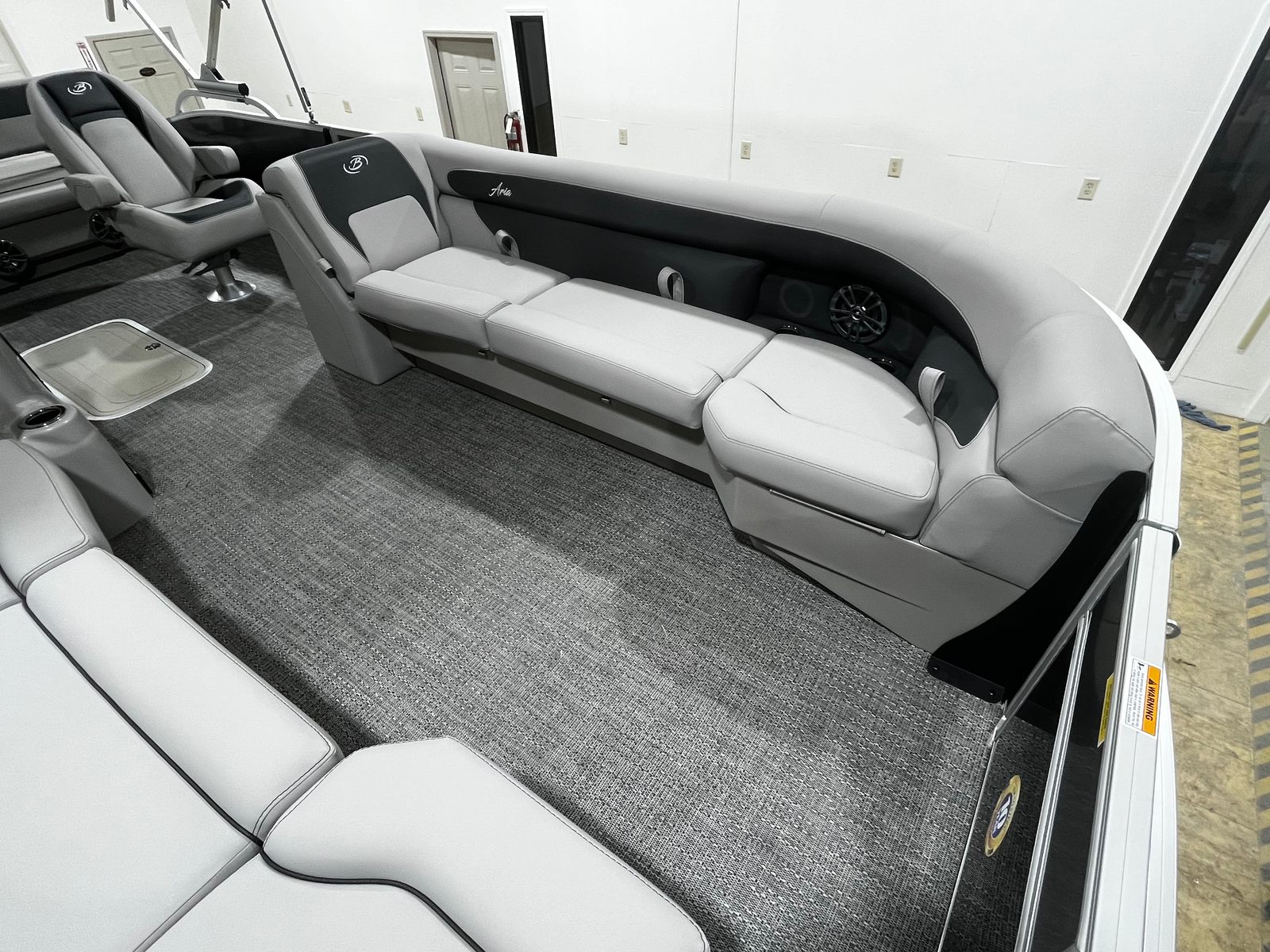 The 2025 Barletta Aria A24UC is a new pontoon that measures just over 23 feet in length, offering ample space for relaxation, entertainment, and adventure. This model is meticulously crafted to deliver a seamless blend of modern aesthetics and practical functionality, making it an ideal vessel for those who value both form and function. With its sleek lines, contemporary color palette, and innovative design, the Aria A24UC is sure to turn heads at any marina or lakeside gathering.