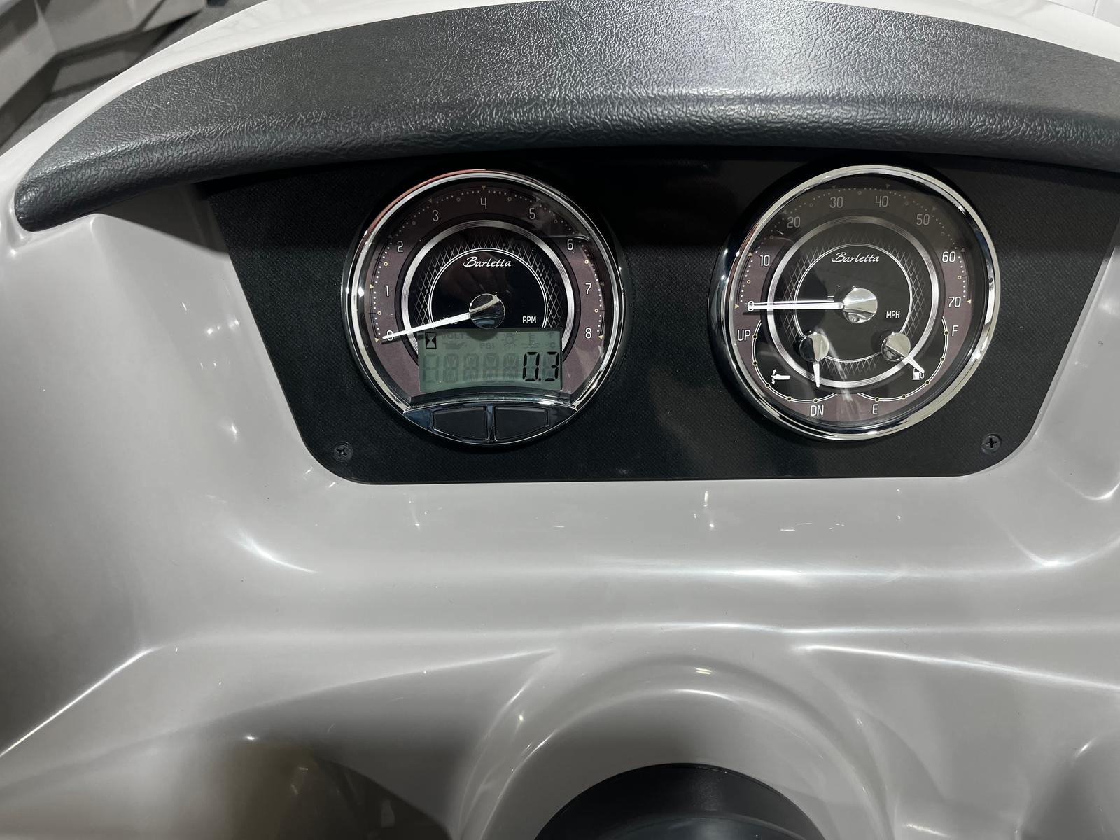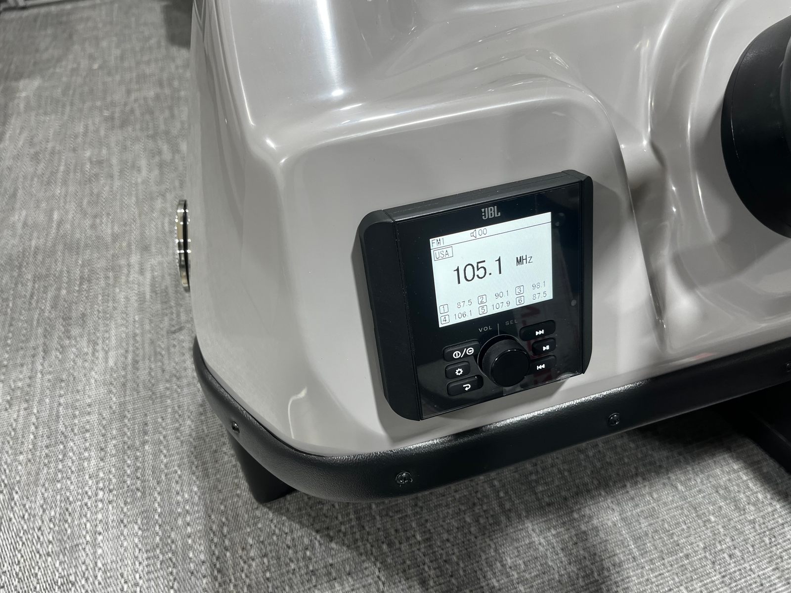 This Barletta pontoon boat is loaded with premium features designed to maximize comfort, convenience, and enjoyment. The Amore Gray flooring provides a stylish and durable foundation, while the Triple Toon Package Aria enhances stability and performance, allowing for smoother rides and increased capacity. The furniture, finished in Tempest Gray, offers plush seating and a modern look, ensuring that every passenger can relax in style.Navigation is a breeze with the integrated Hook 5 GPS, providing accurate and user-friendly guidance for all your adventures. The Railskin Color Aria in Gray Moonstone, complemented by the Railskin Accent Aria in Matte Black, creates a sophisticated exterior that stands out on the water. The pre-rigged Mercury mechanical setup ensures seamless integration with the engine, while the in-floor midship storage offers convenient space for stowing gear, water toys, or picnic essentials.