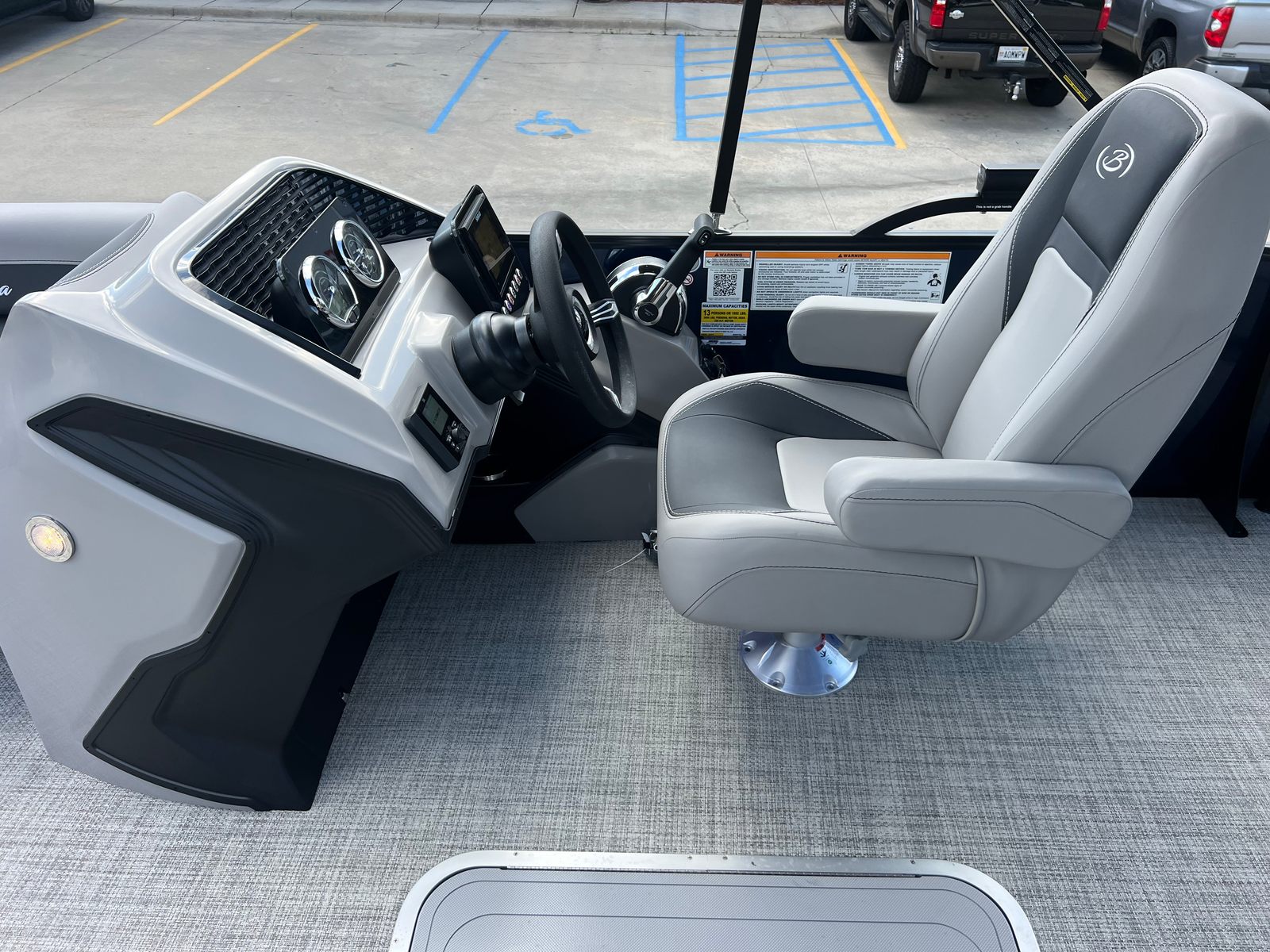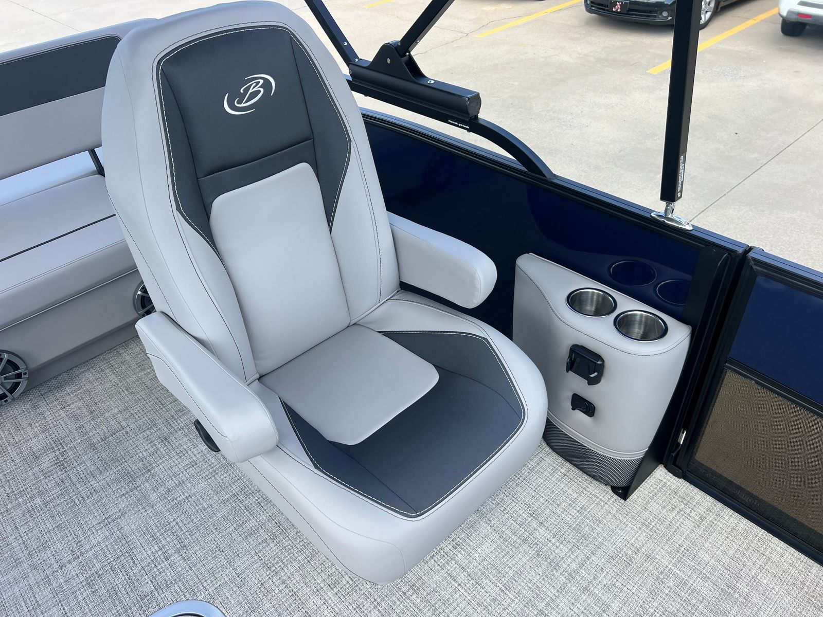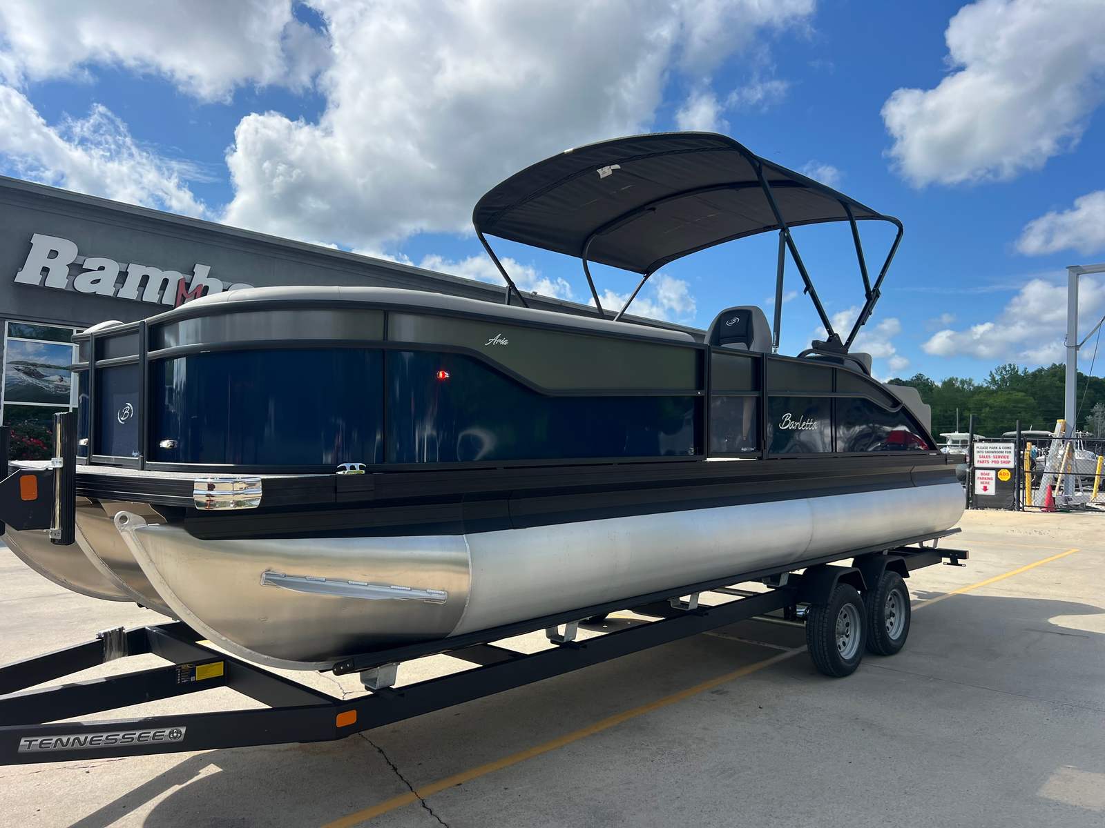 The 2026 Barletta Aria A24UC is a brand-new pontoon boat that measures an impressive 23.83 feet in length, offering ample space for relaxation and entertainment. With its sleek Blue Sapphire Railskin color and the striking Aria Blackout Package, this pontoon stands out on the water with a modern and sophisticated look. The Tempest Gray furniture and Alpine Gray flooring create a refined and inviting atmosphere, making every outing feel like a special occasion. As a new model, this Barletta pontoon boat for sale is in pristine condition, ready for you to make unforgettable memories from day one.