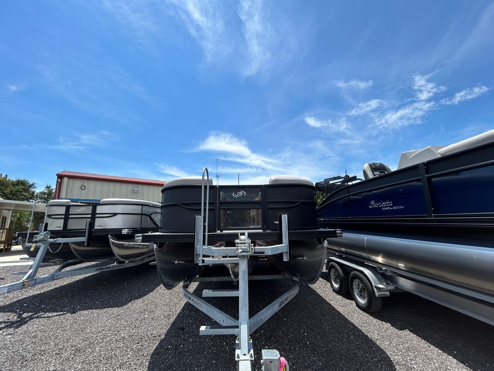 The 2025 Barletta Cabrio C22CC stands out as a premier choice among pontoon boats, offering a perfect balance of comfort, performance, and modern aesthetics. Measuring just over 23 feet in length, this new Barletta boat for sale provides ample space for relaxation and recreation. The Cabrio C22CC’s contemporary design is accentuated by its Matte Black railskin color and the sophisticated Blackout Package Cabrio, giving it a bold, eye-catching presence on the water. The Marquesan Gray furniture with Charcoal accents adds a touch of elegance, ensuring that every outing feels like a special occasion.