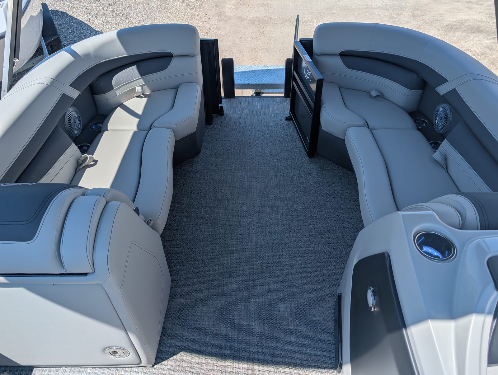 The 2025 Barletta Cabrio C22CC is packed with premium features that set it apart from other pontoon boats for sale. The Amore Gray flooring offers a modern and sophisticated look while providing durability and easy maintenance. The interior RGB Lighting Package Cabrio creates a vibrant and customizable atmosphere, perfect for evening gatherings or late-night cruises. Entertain guests around the stylish table, pedestal, and base, complete with Yeti-ready cupholders to keep your favorite beverages secure and within reach.The Triple Toon Package with midship storage enhances stability and buoyancy, ensuring a smooth and comfortable ride even when the boat is fully loaded. The helm is equipped with a Simrad 7 G07 XSR chartplotter and multifunction display, giving you advanced navigation and control at your fingertips. The exterior features a Metal Jacket Protectant, offering added durability and protection against the elements, while the Blackout Package Cabrio railskin adds a sleek, modern touch to the boat’s profile.Inside, the Marquesan Gray furniture with charcoal accents provides plush seating and a refined aesthetic, making every moment on board feel like a luxury experience. Every detail, from the upholstery to the layout, is designed with comfort and style in mind.