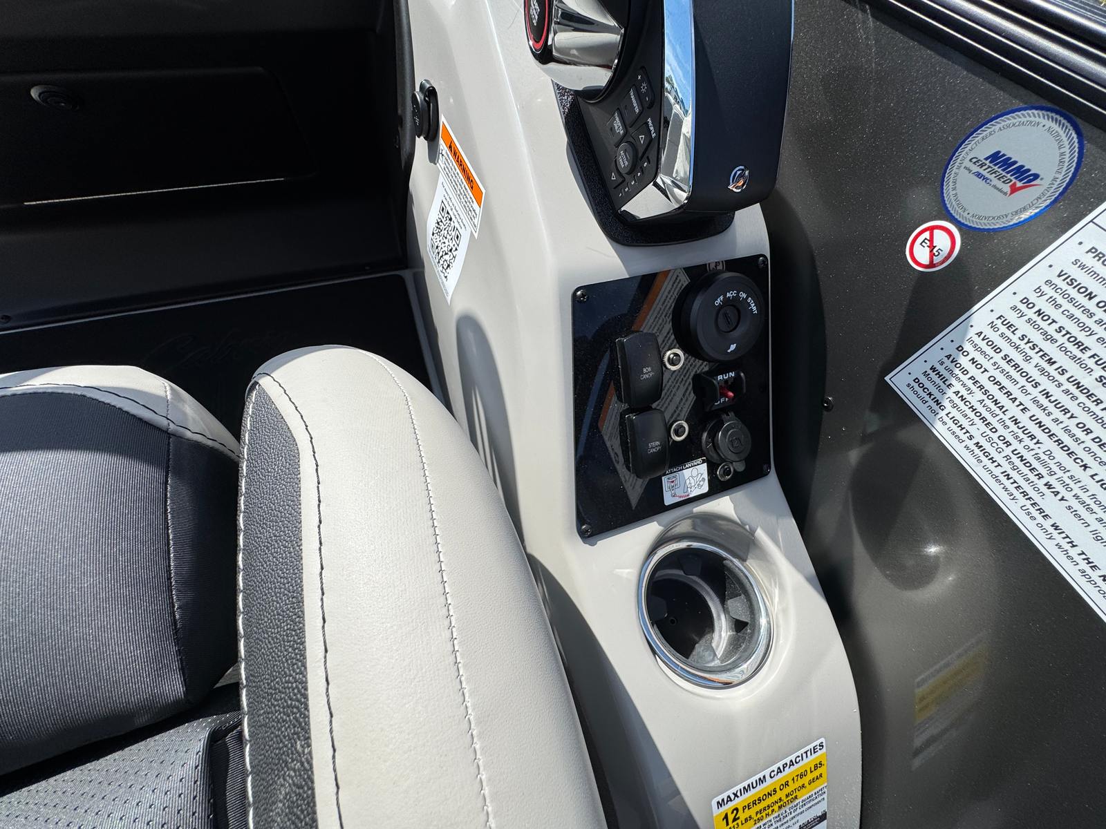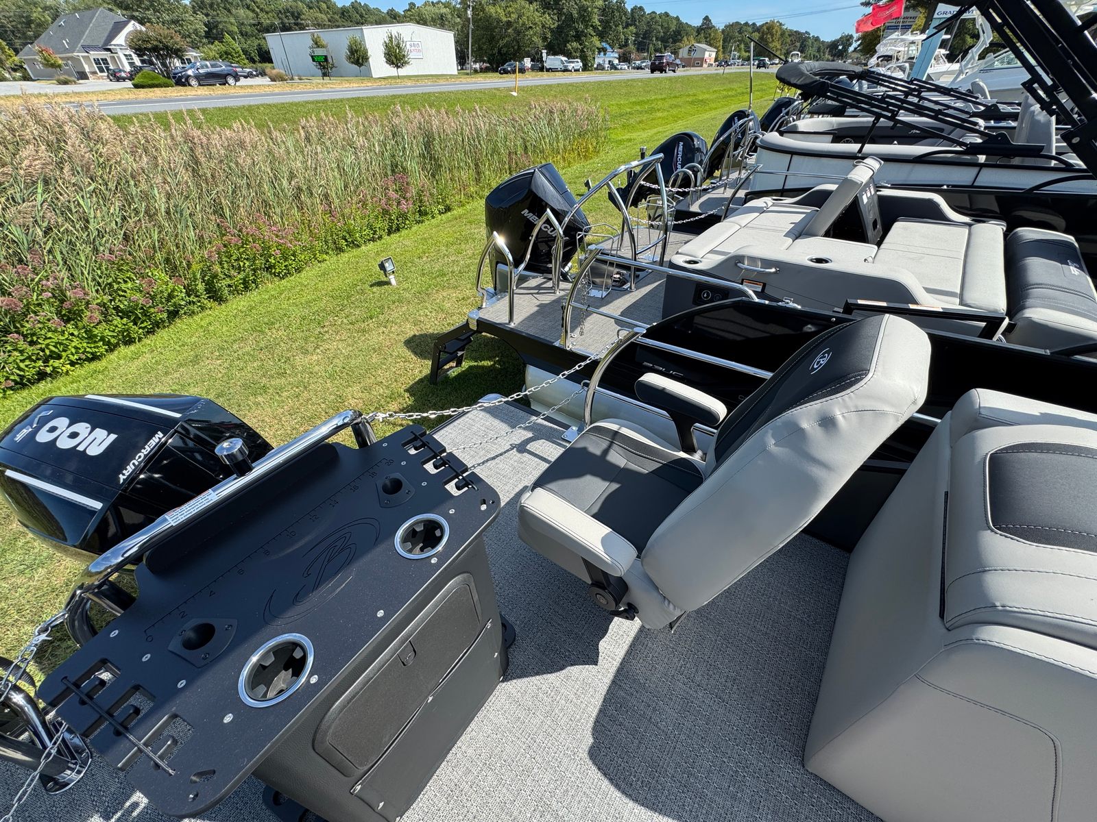 Under the deck, the Cabrio C22CC is powered by a single Mercury (M) 200L FourStroke engine, delivering an impressive 200 horsepower. This engine is renowned for its reliability, smooth operation, and fuel efficiency, ensuring you can cruise, entertain, or explore with confidence. The Mercury Digital DTS Pre-Rig for NON-VERADO and power assist steering provide precise control and effortless handling, making every outing enjoyable and stress-free. The rigged engine with a stainless steel prop further enhances performance, offering responsive acceleration and optimal maneuverability whether you are gliding across calm waters or navigating busy channels.