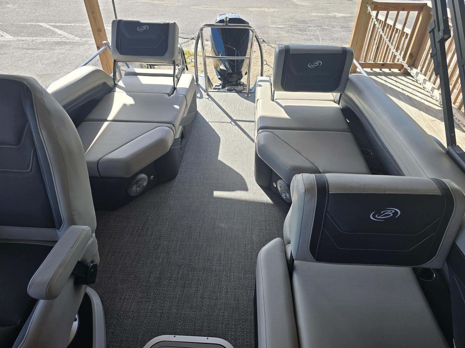 Owning the Barletta Cabrio C22M pontoon boat means embracing a lifestyle of fun, relaxation, and adventure. The spacious deck layout is perfect for hosting family gatherings, parties, or quiet afternoons spent soaking up the sun. The comfortable seating and thoughtful design ensure everyone on board enjoys a premium experience, whether you’re cruising, swimming, or simply unwinding. The advanced features, such as the adjustable captain’s chair and interior lighting, add a touch of luxury and convenience, making every outing memorable.This Barletta boat for sale is designed with socializing in mind, offering plenty of room for guests to mingle, dine, and enjoy the scenery. The double bimini provides shade for those who prefer to stay cool, while the open layout encourages interaction and fun. The midship storage keeps the deck clutter-free, allowing for easy movement and organization. With its powerful engine and stable triple toon design, the Cabrio C22M is equally suited for leisurely cruises and more spirited adventures, catering to a wide range of boating preferences.