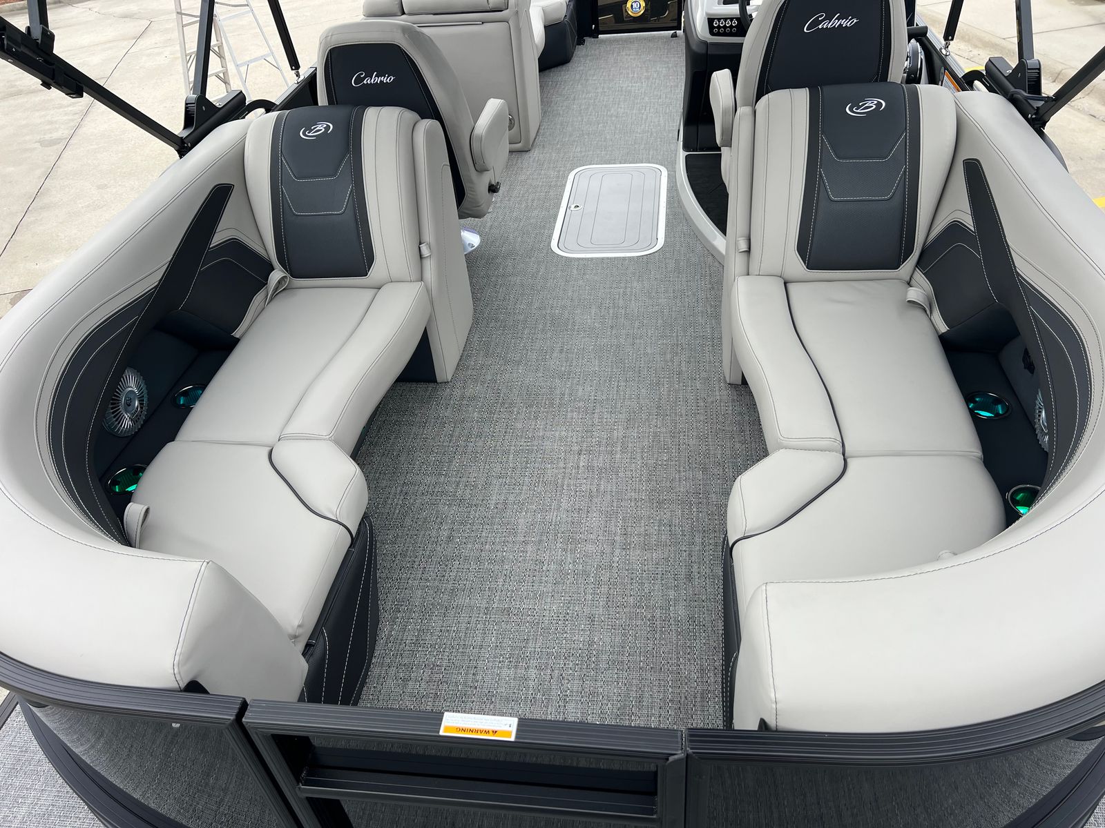 The 2026 Barletta Cabrio C22QC is a brand-new pontoon boat, measuring just over 23 feet in length. This spacious design provides ample room for family and friends, making it an ideal choice for those who love to entertain or simply enjoy the open water. The sleek Railskin Color in Black Diamond gives the boat a modern, sophisticated look, while the Marquesan Gray with Onyx furniture and Amore Gray flooring create a welcoming and stylish interior. Every detail of this Barletta boat for sale has been thoughtfully crafted to deliver comfort, durability, and a touch of elegance.