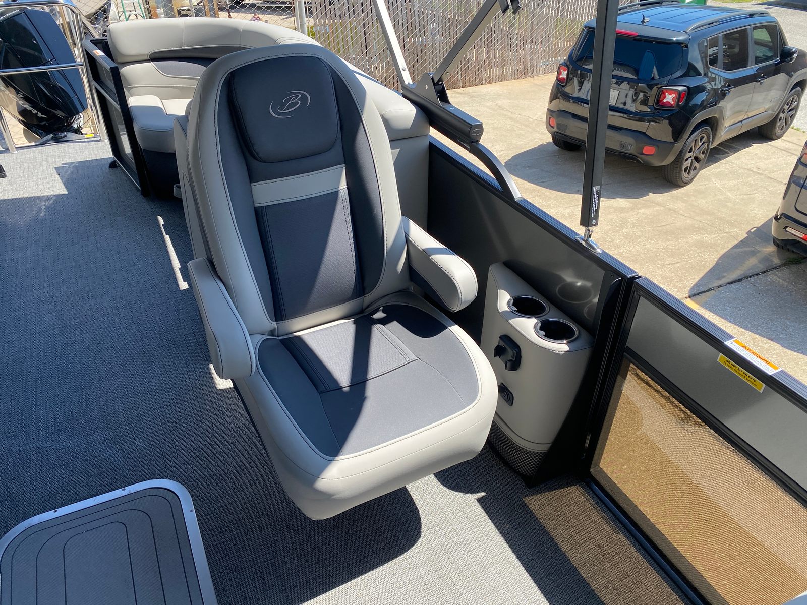 The Barletta Cabrio C22QC is packed with premium features that set it apart from other pontoon boats for sale. The triple toon package not only boosts performance but also provides convenient midship storage, making it easy to stow away gear and essentials for a clutter-free deck. The Blackout Package Cabrio railskin adds a touch of elegance and modern flair, while the Metal Jacket Protectant on the exterior ensures your investment stays looking pristine season after season.Enjoy shade and comfort with the double bimini setup, including an additional power bimini for effortless adjustment. Inside, you’ll find a thoughtfully designed table, pedestal, and base equipped with Yeti-ready cupholders, perfect for keeping refreshments close at hand during social gatherings. The helm features a Simrad 7 G07 XSR chartplotter/multifunction display, offering advanced navigation and control at your fingertips. Every detail, from the flooring to the railskin color, has been chosen to enhance your boating lifestyle.