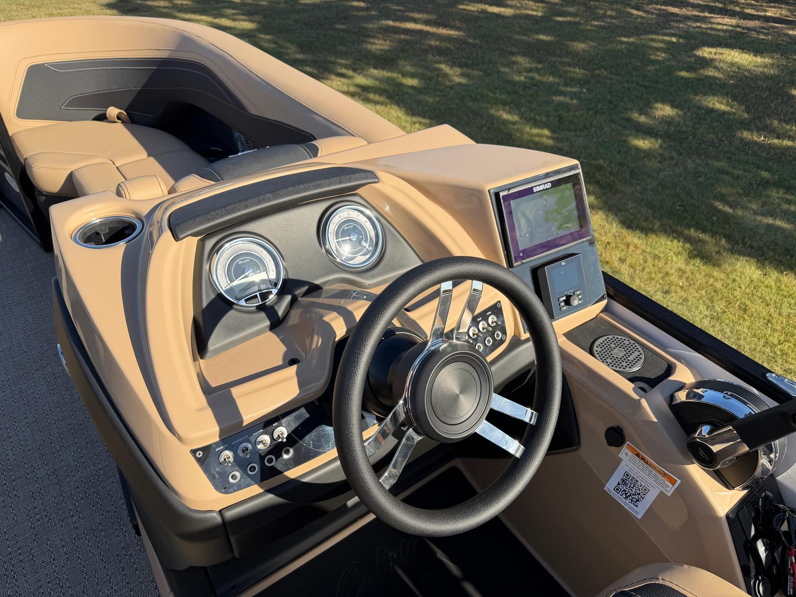 Practicality is at the heart of the Cabrio C22U’s design. The midship storage provided by the Triple Toon Package allows you to keep your boat organized and clutter-free, making it easy to store life jackets, fishing gear, and other essentials. The durable Amore Tan flooring is easy to clean, ensuring your pontoon stays looking its best after every adventure. The Metal Jacket Protectant adds an extra layer of defense against the elements, reducing maintenance and preserving the boat’s value.Docking and maneuvering are made simple thanks to the Mercury power assist system, which provides responsive steering and effortless control. The stainless steel prop enhances fuel efficiency and performance, allowing you to spend more time enjoying the water and less time worrying about upkeep. Whether you’re navigating tight marinas or anchoring in your favorite cove, the Cabrio C22U’s thoughtful features make every aspect of ownership enjoyable.