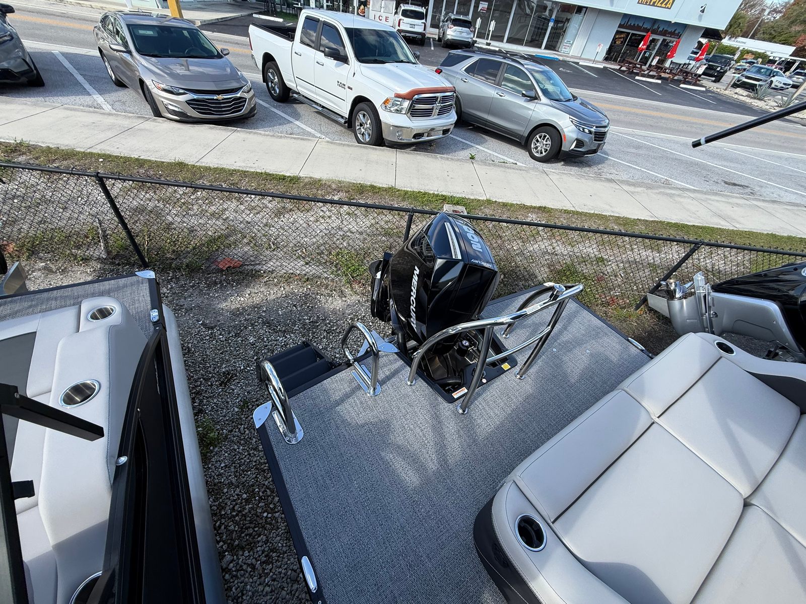 This pontoon boat is as practical as it is luxurious. The midship storage included in the Triple Toon Package provides ample space for life jackets, water sports equipment, and picnic supplies, keeping the deck clutter-free and organized. The power assist steering and Mercury Digital DTS system make docking and maneuvering a breeze, even for less experienced boaters. The durable Amore Gray flooring is designed for easy maintenance, so you can spend more time enjoying the water and less time cleaning up. With its fuel-efficient Mercury engine, you can explore further and stay out longer without worrying about frequent refueling stops.