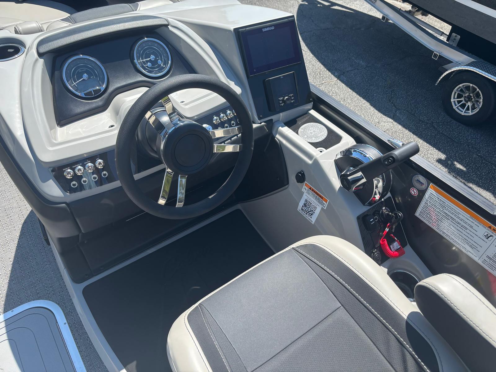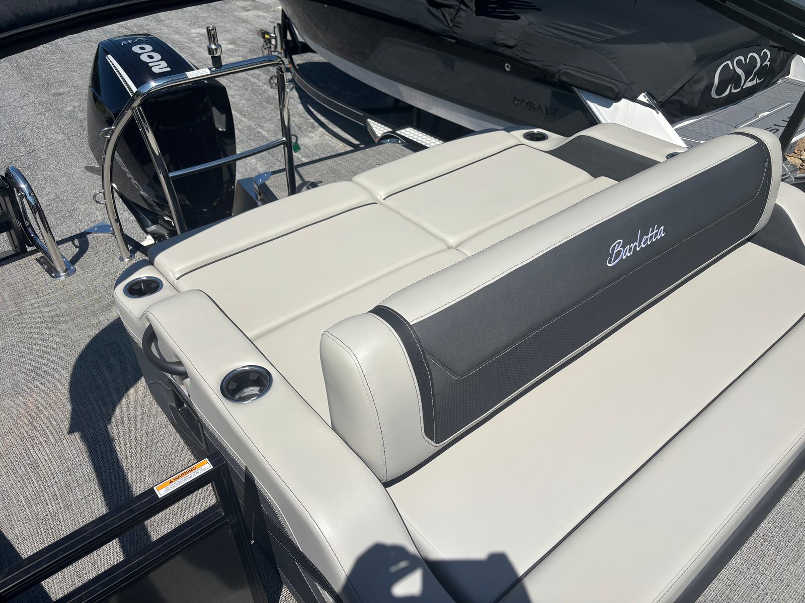 Powering the Barletta Cabrio C22UC is a single Mercury (M) 200L FourStroke engine, delivering an impressive 200 horsepower. This engine is renowned for its reliability, smooth operation, and fuel efficiency, ensuring you have the power you need for exhilarating rides or leisurely cruises. The mechanical pre-rig with power assist steering provides effortless control, making navigation a breeze even in challenging conditions. The triple toon package with midship storage enhances stability and performance, allowing for confident handling and a smooth ride, even when the boat is fully loaded with family and friends. The stainless steel prop ensures optimal thrust and durability, so you can enjoy worry-free adventures season after season.
