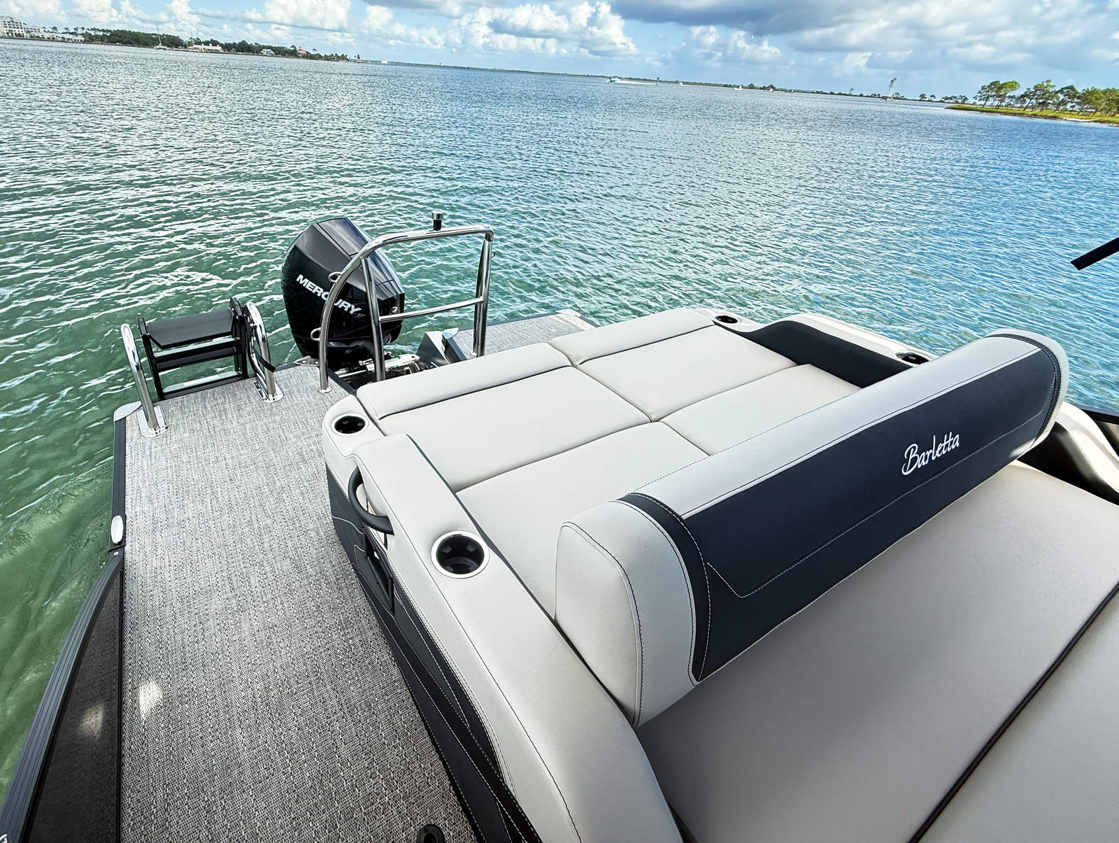 The Barletta Cabrio C22UC is designed with practicality in mind, making ownership easy and enjoyable. The efficient Mercury 200L 4S engine offers a balance of power and fuel economy, so you can spend more time on the water and less time at the pump. The mechanical pre-rig with power assist simplifies steering and control, making it accessible for boaters of all experience levels.The Triple Toon Package enhances stability, making boarding, docking, and cruising smoother and safer. The midship storage compartment is perfect for keeping life jackets, water sports equipment, and personal items secure and out of the way. The durable flooring and high-quality upholstery are easy to clean and maintain, ensuring your boat looks great season after season. With thoughtful design and user-friendly features, the Cabrio C22UC makes every outing hassle-free and enjoyable.