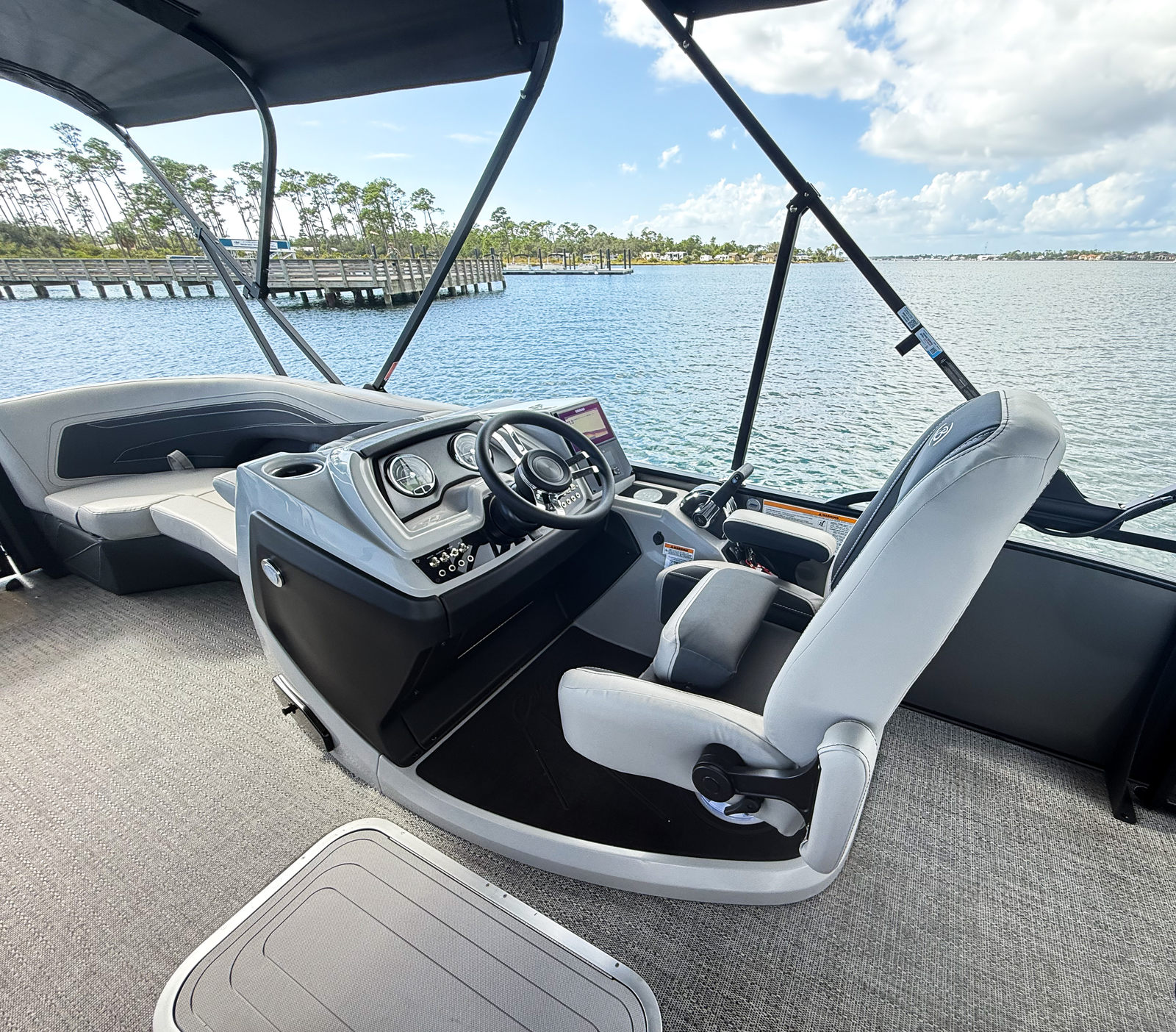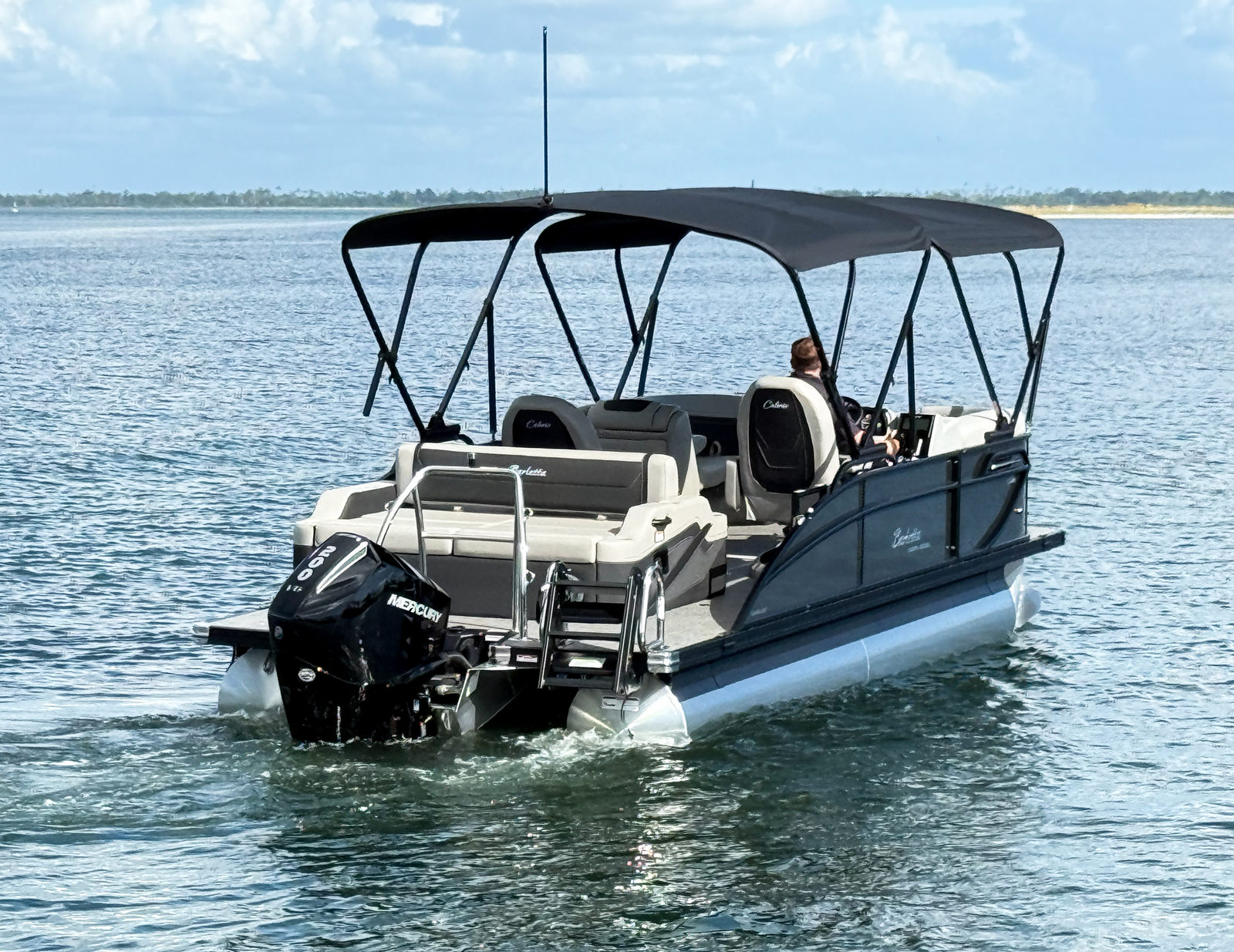 The Barletta Cabrio C22UC is packed with premium features that elevate your boating experience. The Gray Moonstone Railskin color and Blackout Package Cabrio give the boat a contemporary, upscale look, while the Marquesan Gray with Onyx furniture provides plush seating and a refined aesthetic. The Amore Gray flooring is both stylish and practical, offering durability and easy maintenance for busy days on the water.As part of the Coastal Edition Cabrio, this pontoon is built to withstand the elements, ensuring longevity and peace of mind. The Triple Toon Package with midship storage not only enhances performance but also provides convenient space for stowing gear, water toys, and essentials. The double bimini, including an additional power bimini, offers exceptional shade and protection from the sun, allowing you to relax in comfort during long afternoons on the water. Every feature is thoughtfully integrated to maximize enjoyment, convenience, and safety.