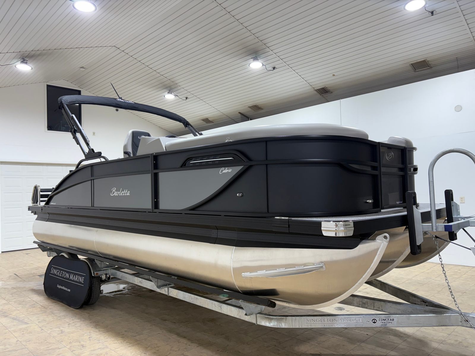 The 2026 Barletta Cabrio C22UC is a new pontoon boat that measures an impressive 23.17 feet in length, offering ample space for family, friends, and all your favorite activities. Barletta’s reputation for quality craftsmanship shines through in every detail, from the sleek Matte Black railskin package to the plush Marquesan Gray with Onyx furniture. This pontoon is built to impress, whether you’re cruising, entertaining, or simply relaxing on the water.