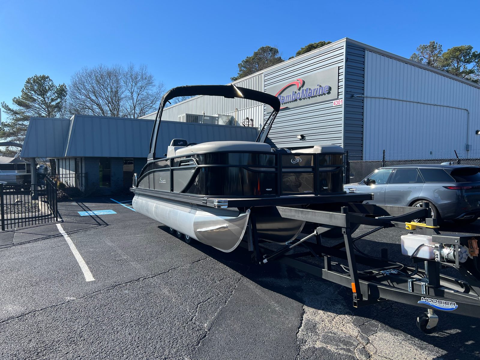 Step aboard the Barletta Cabrio C22UC and discover a world of comfort and style. The Railskin Color in Black Diamond, accented by Gray Moonstone, creates a striking visual appeal, while the Blackout Package Cabrio adds a touch of modern sophistication. The interior is adorned with Marquesan Gray furniture featuring Onyx accents, providing plush seating and a refined ambiance. The Amore Gray flooring is both elegant and durable, designed to withstand the rigors of active days on the water.The Triple Toon Package with midship storage not only boosts performance but also offers practical storage solutions for your gear and water toys. The Sport Bimini, installed in place of the standard bimini, provides generous shade and protection from the sun, ensuring comfort during long days on the water. Every detail of the Cabrio C22UC is thoughtfully designed to enhance your boating experience, from the premium materials to the innovative layout.