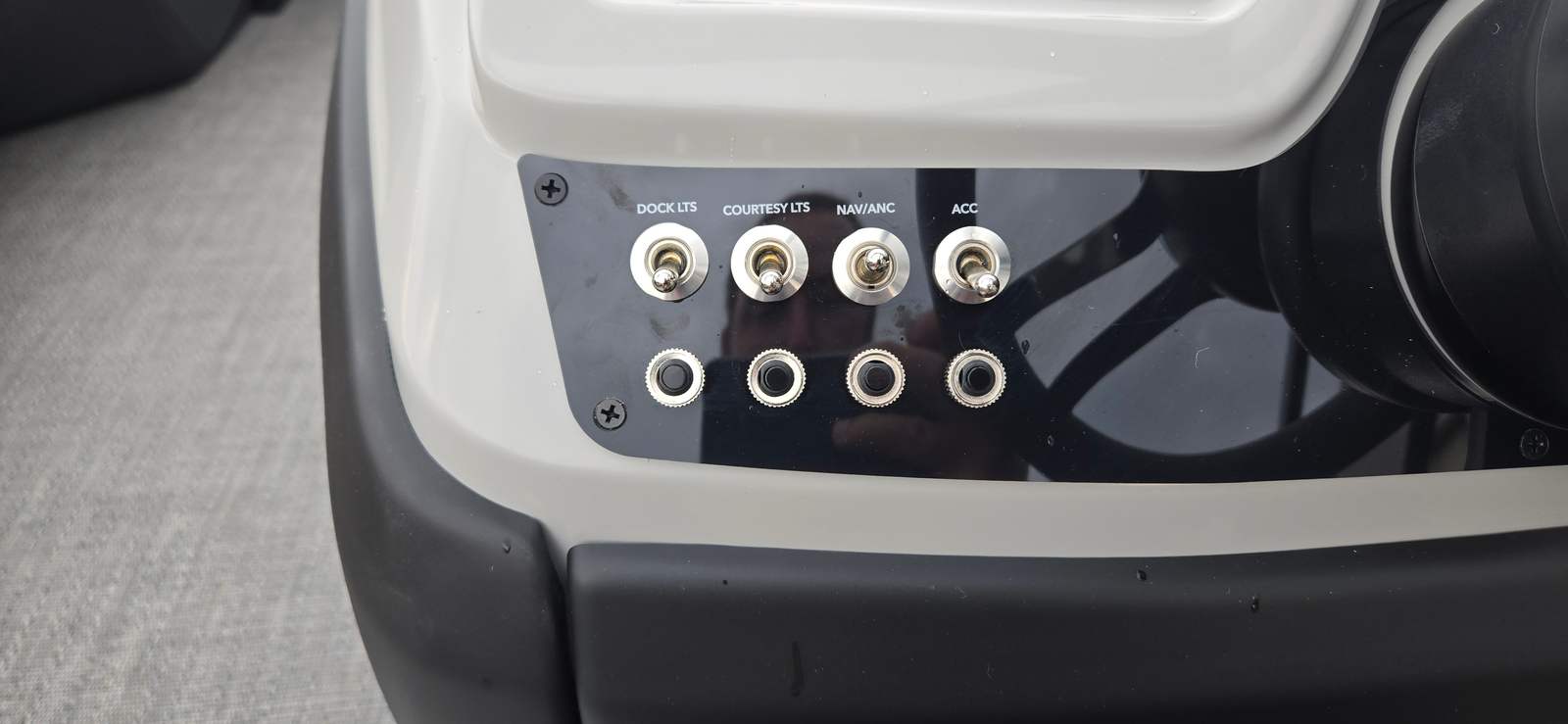 The Barletta Cabrio C22UC is loaded with special features designed to maximize comfort, convenience, and enjoyment. The Triple Toon Package with midship storage provides enhanced stability and additional space for storing gear, water toys, and essentials, keeping the deck clutter-free and organized. The Sport Bimini offers generous shade, allowing you and your guests to relax in comfort even on the sunniest days. The Blackout Package Cabrio not only elevates the boat’s visual appeal but also adds a layer of exclusivity that will turn heads at the marina. The combination of Marquesan Gray with Onyx furniture and Amore Gray flooring creates a modern, inviting environment that’s perfect for entertaining or unwinding after a day of adventure.